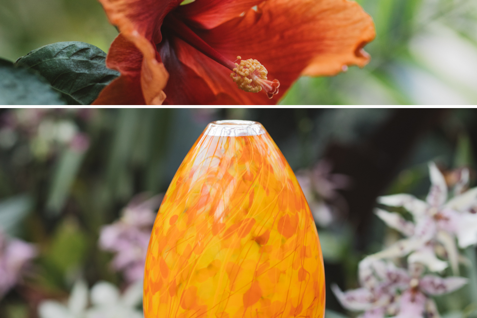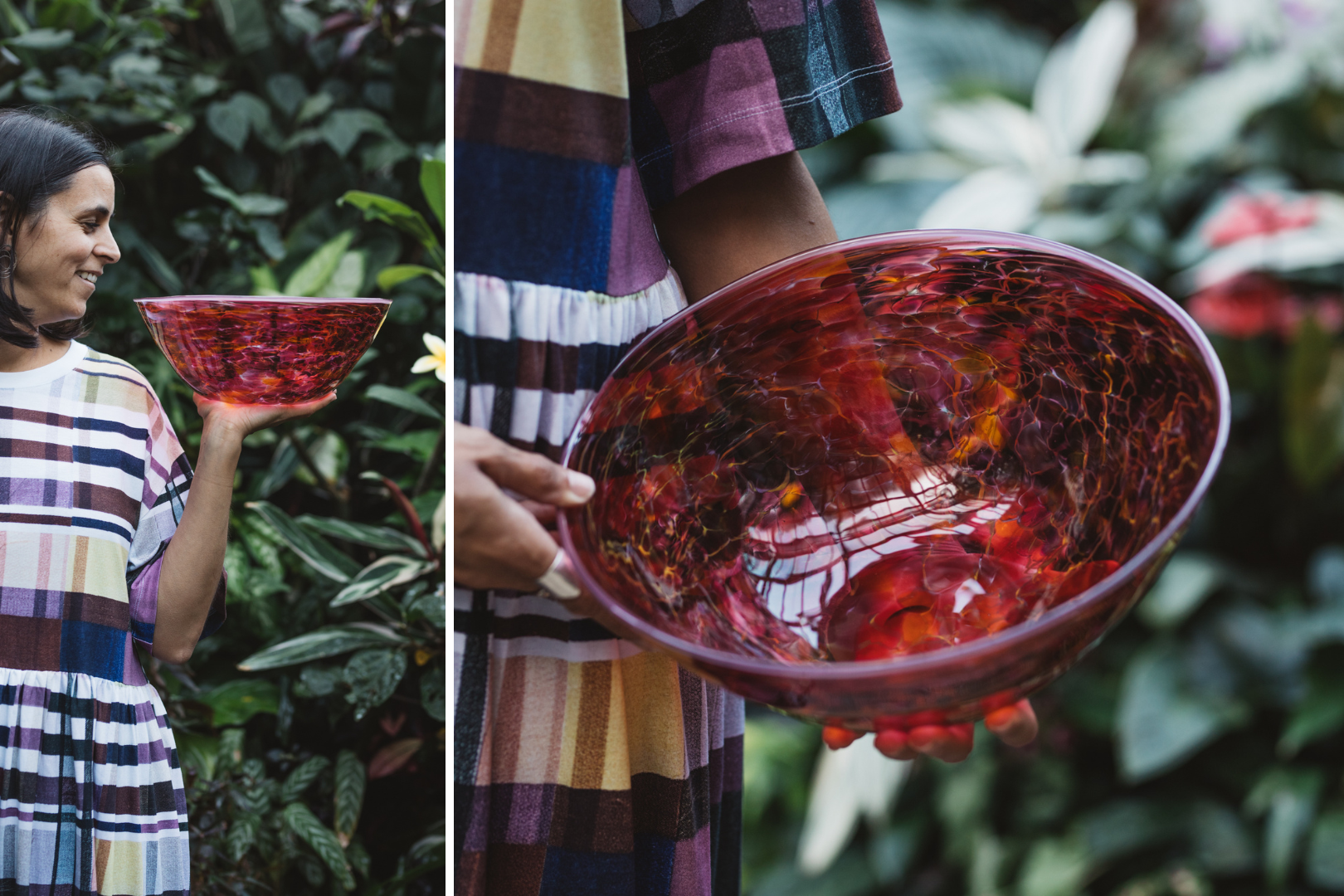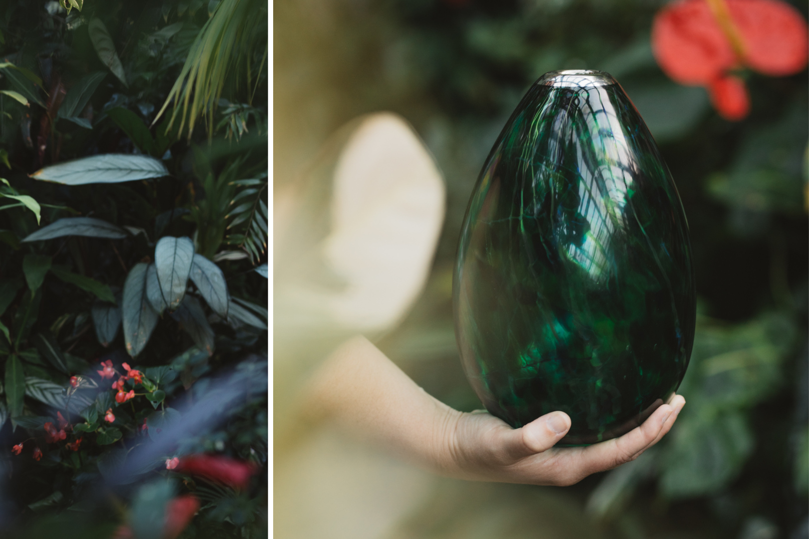 Luella and Hannah paid a visit to an iconic space in New Plymouth, the Fernery at Pukekura Park. With the help of our friend and amazing photographer, Katie O'Neill, we captured the glassworks of Keith Grinter which were right at home among the tropical flora.