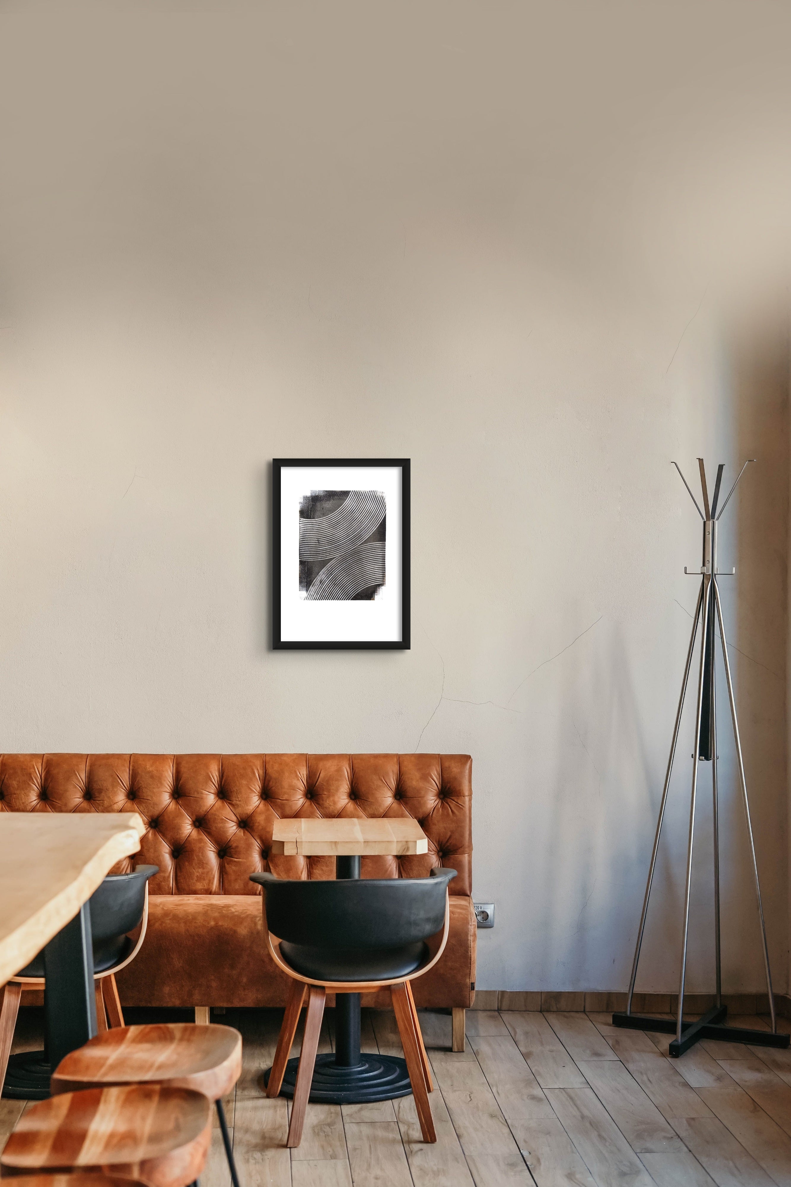 "Each unique piece from the ‘Storm’ series is composed of directional gestural strokes, multiple transparent layers, and opposing curves visualising the elements unleashed by Tāwhirimātea (God of weather). He was angry about not being consulted when his brothers separated his parents Ranganui & Papatūānuku to let light into the world."
