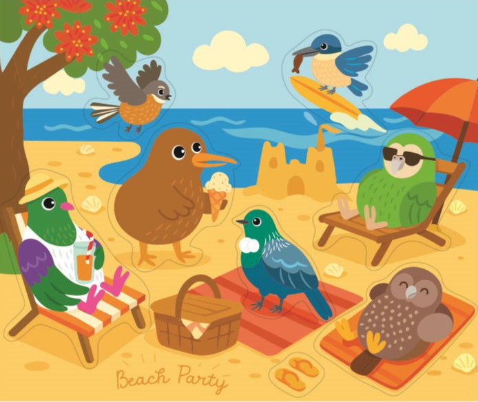 This colourful magnet set features a classic New Zealand beach scene with some of our favourite native birds.