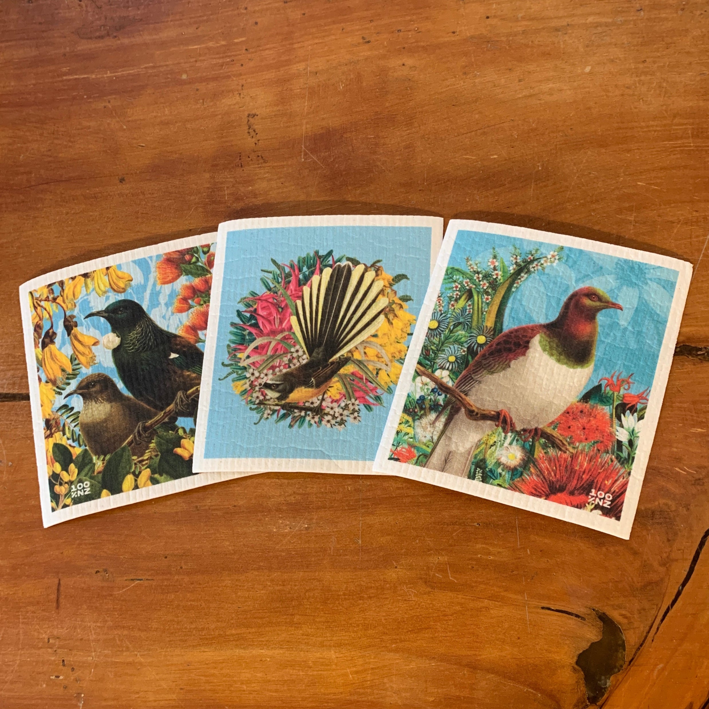 Home/100 Percent NZ/Swedish Dishcloth - botanicals birds
