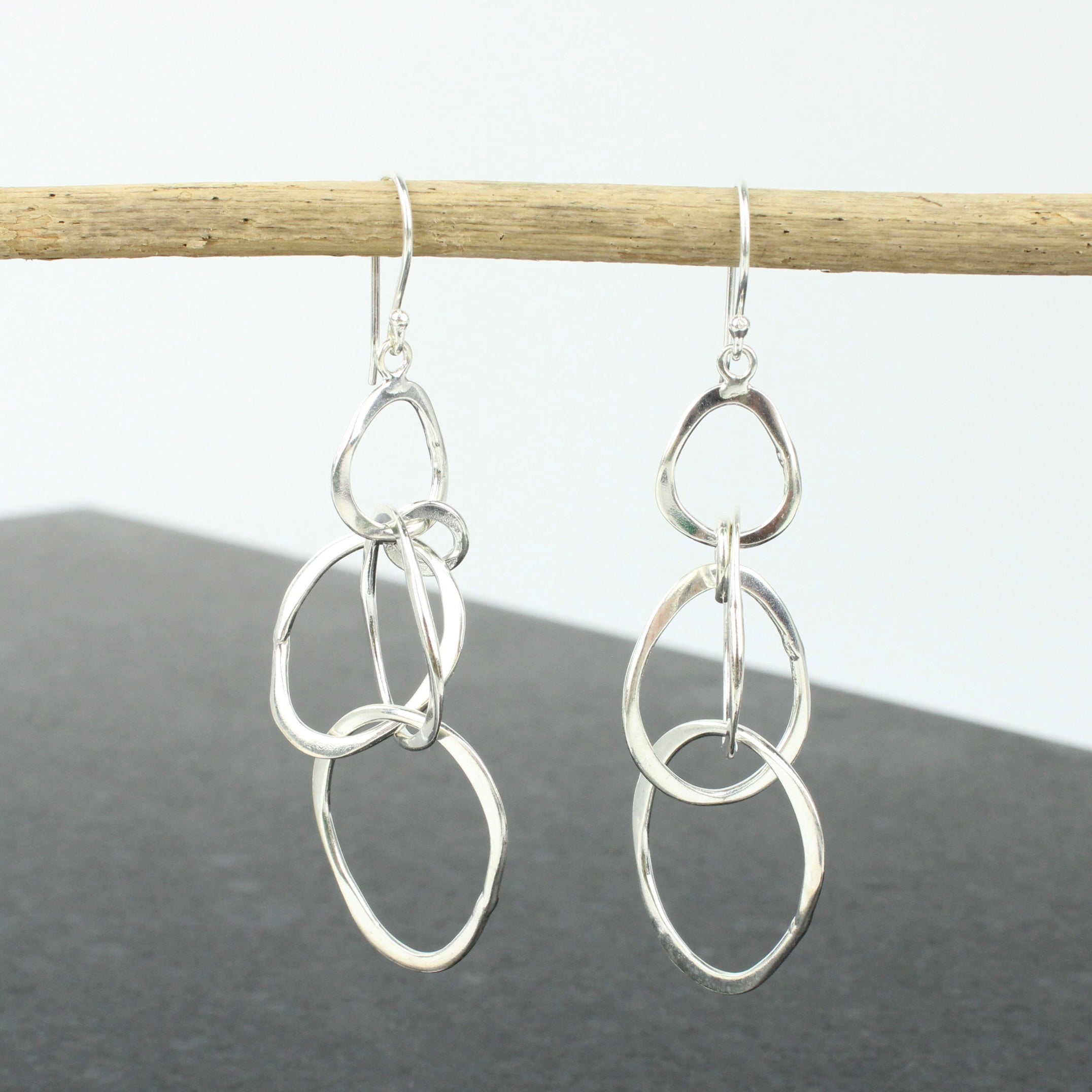 Sterling silver irregular circles on hooks. Butterfly hook fastenings included