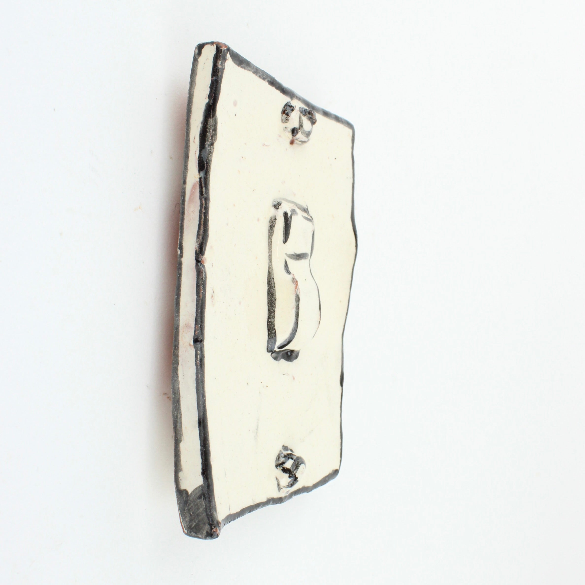 One-off handmade ceramic tile made with the artists quirky sense of humour. Open to interpretation.