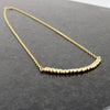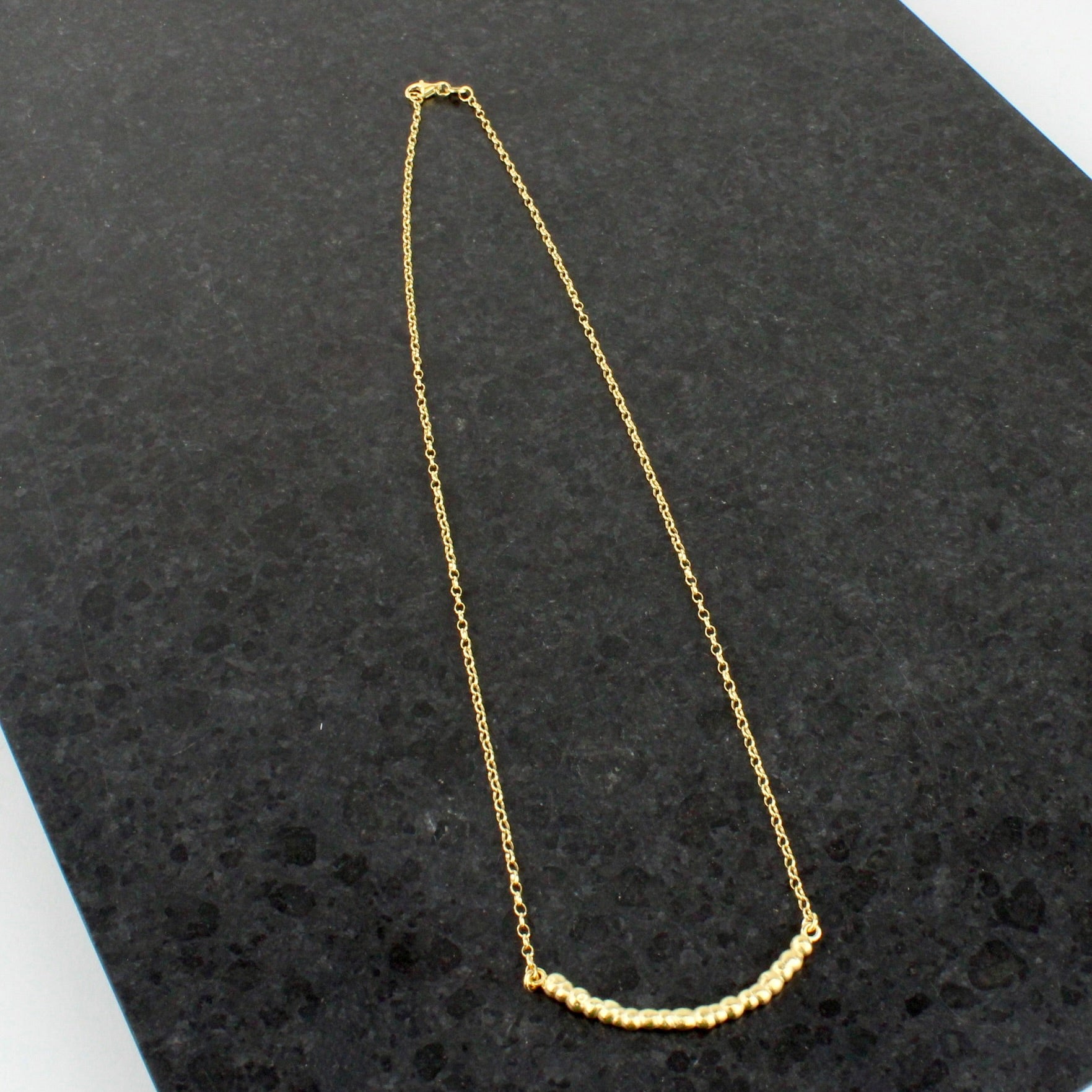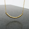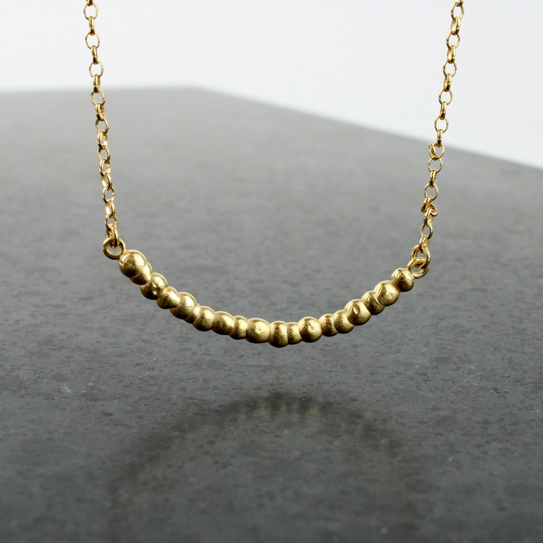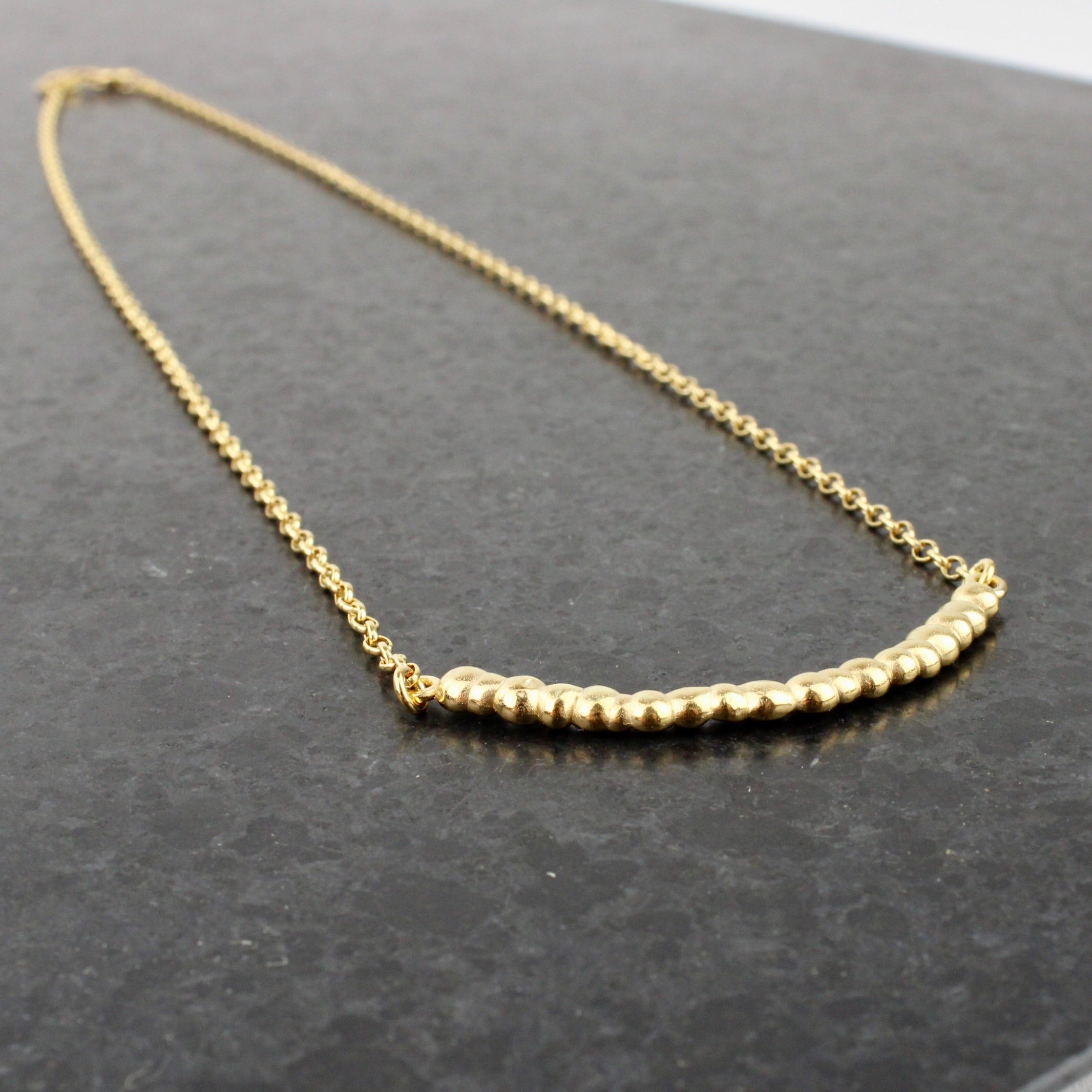Annui necklace is handmade in gold plated solid sterling silver and features an organically textured, curved pendant, suspended at both ends on a sterling silver chain.