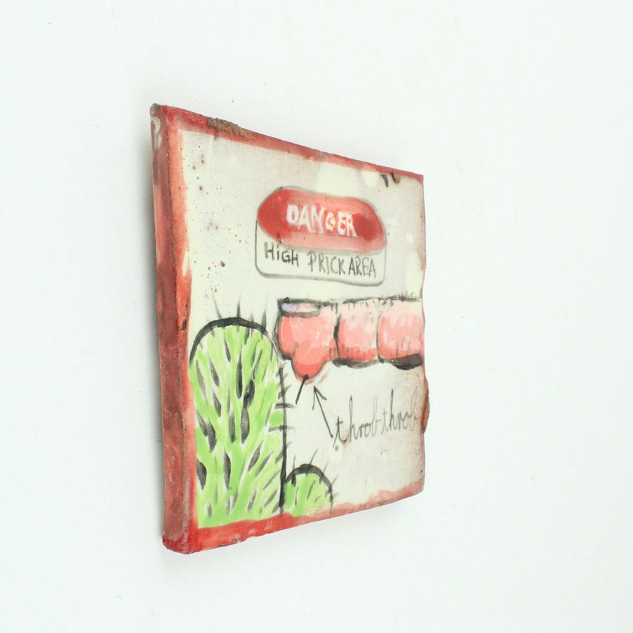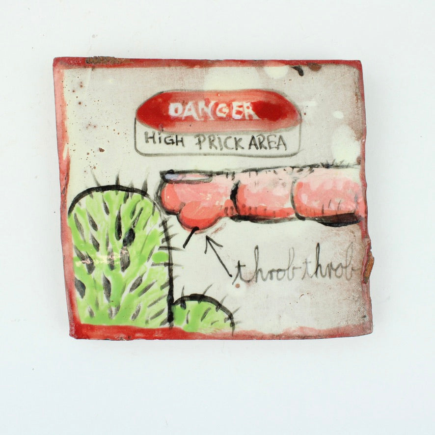 One-off handmade ceramic tile made with the artists quirky sense of humour. Open to interpretation.