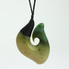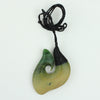 Flowerjade Pounamu Hei Matau pendant with complex binding and hand carved in New Zealand by master carver Tyson Lynes.