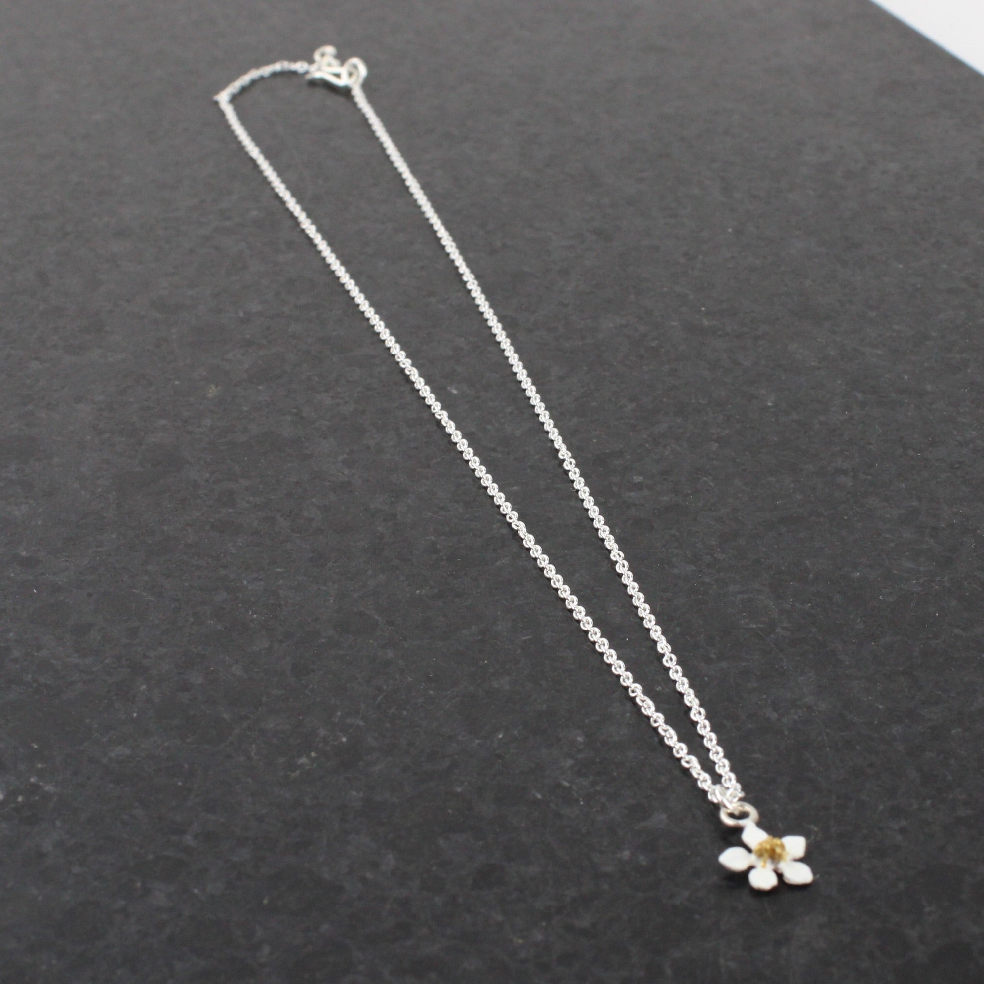 Sterling silver 10mm Neroli blossom, hand painted with porcelain paint on sterling silver 450mm chain