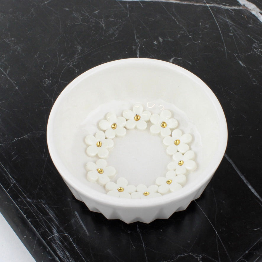 Dawn Clayden’s work blossoms from a deep love of flowers, their vibrancy echoed in the elegance she admires from great fashion houses such as Christian Dior. Her relationship with clay began straight out of high school at Morris and James Pottery, where the material first took hold of her imagination. Though she went on to study Architectural Interior Design, clay called her back, and in her final year she found herself at Studio Ceramics, learning alongside a master mould maker whose roots traced back to Crown Lynn. These layered influences of botanical, sartorial and industrial, continue to shape the refined yet expressive character of her ceramic practice.