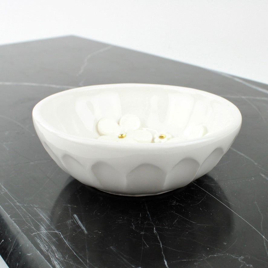 Dawn Clayden’s work blossoms from a deep love of flowers, their vibrancy echoed in the elegance she admires from great fashion houses such as Christian Dior. Her relationship with clay began straight out of high school at Morris and James Pottery, where the material first took hold of her imagination. Though she went on to study Architectural Interior Design, clay called her back, and in her final year she found herself at Studio Ceramics, learning alongside a master mould maker whose roots traced back to Crown Lynn. These layered influences of botanical, sartorial and industrial, continue to shape the refined yet expressive character of her ceramic practice.