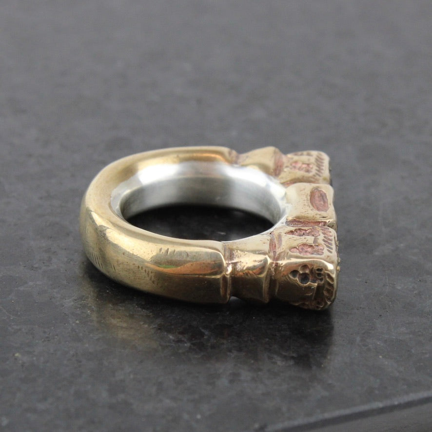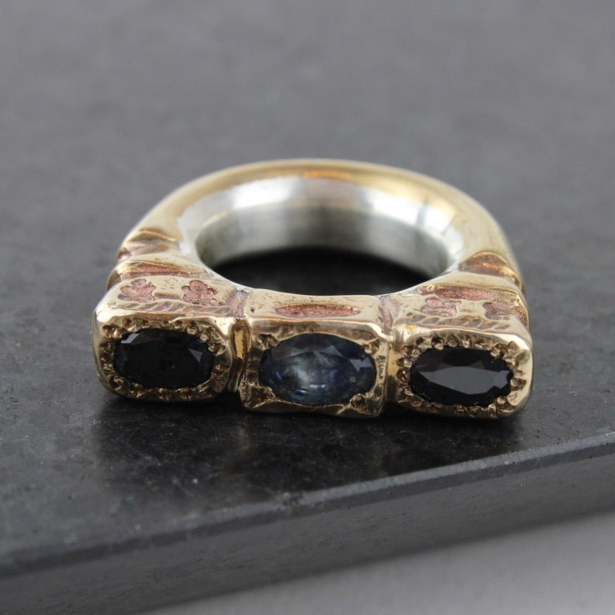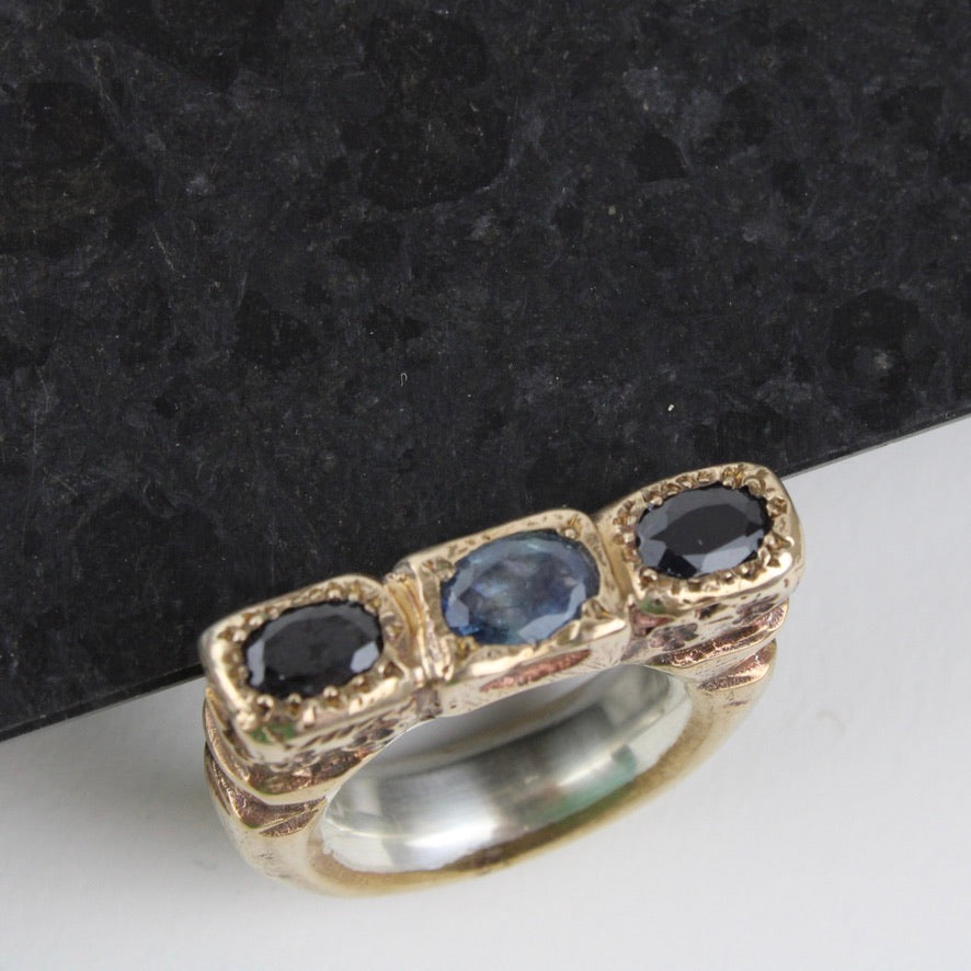 Bronze ring with sterling silver sterling silver liner set with three sapphires