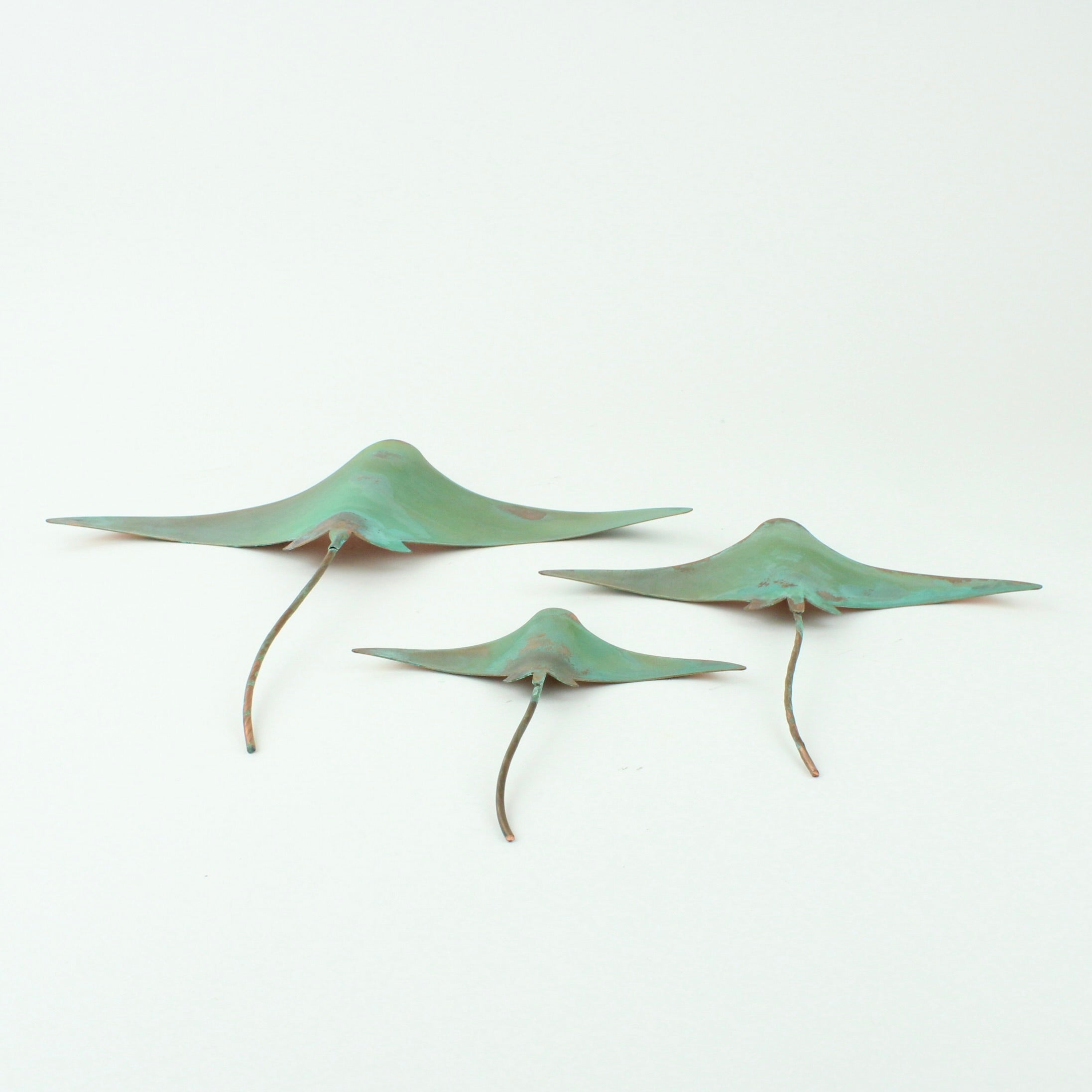 Daniel uses sheet copper to make each wall hung stingray and coats with protective matt finish