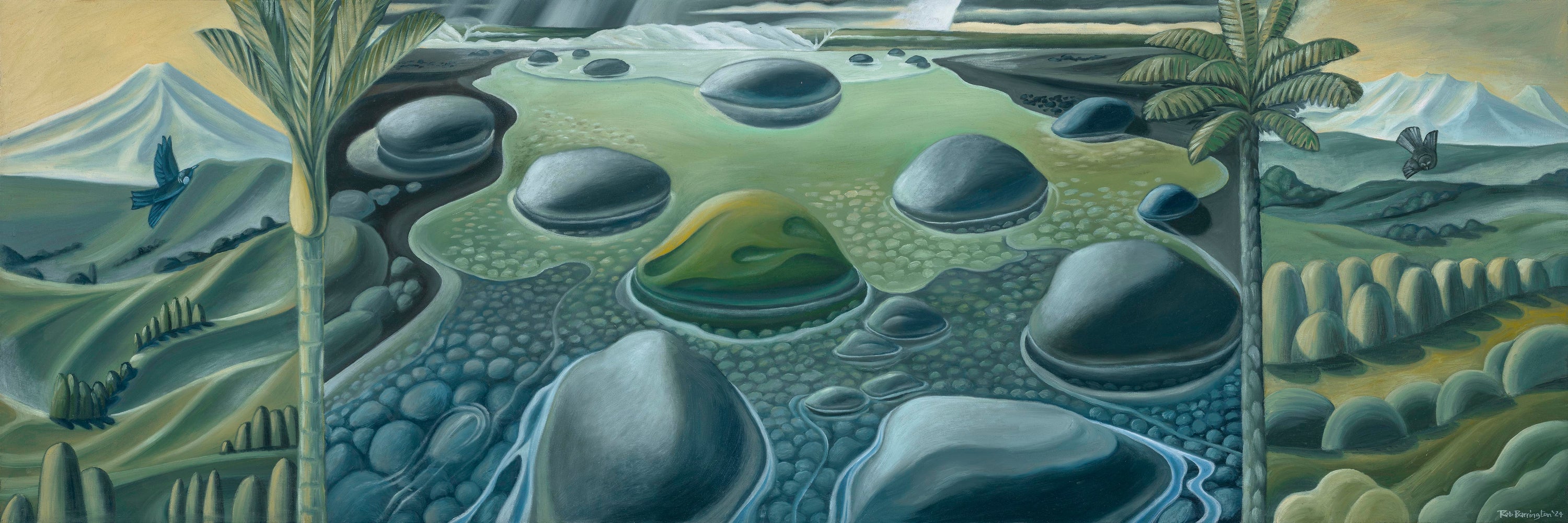 Rob Barrington is an established New Zealand artist whose career spans over three decades in the sign and design industry. Now fully dedicated to his art, he draws on a lifetime of creative exploration, weaving memories and experiences into evocative compositions inspired by both urban and natural landscapes. Working across media including pen and ink, coloured pencil, acrylic, pastel, and digital formats, Rob’s practice reflects his rich background as an artist, surfer, musician, and designer.