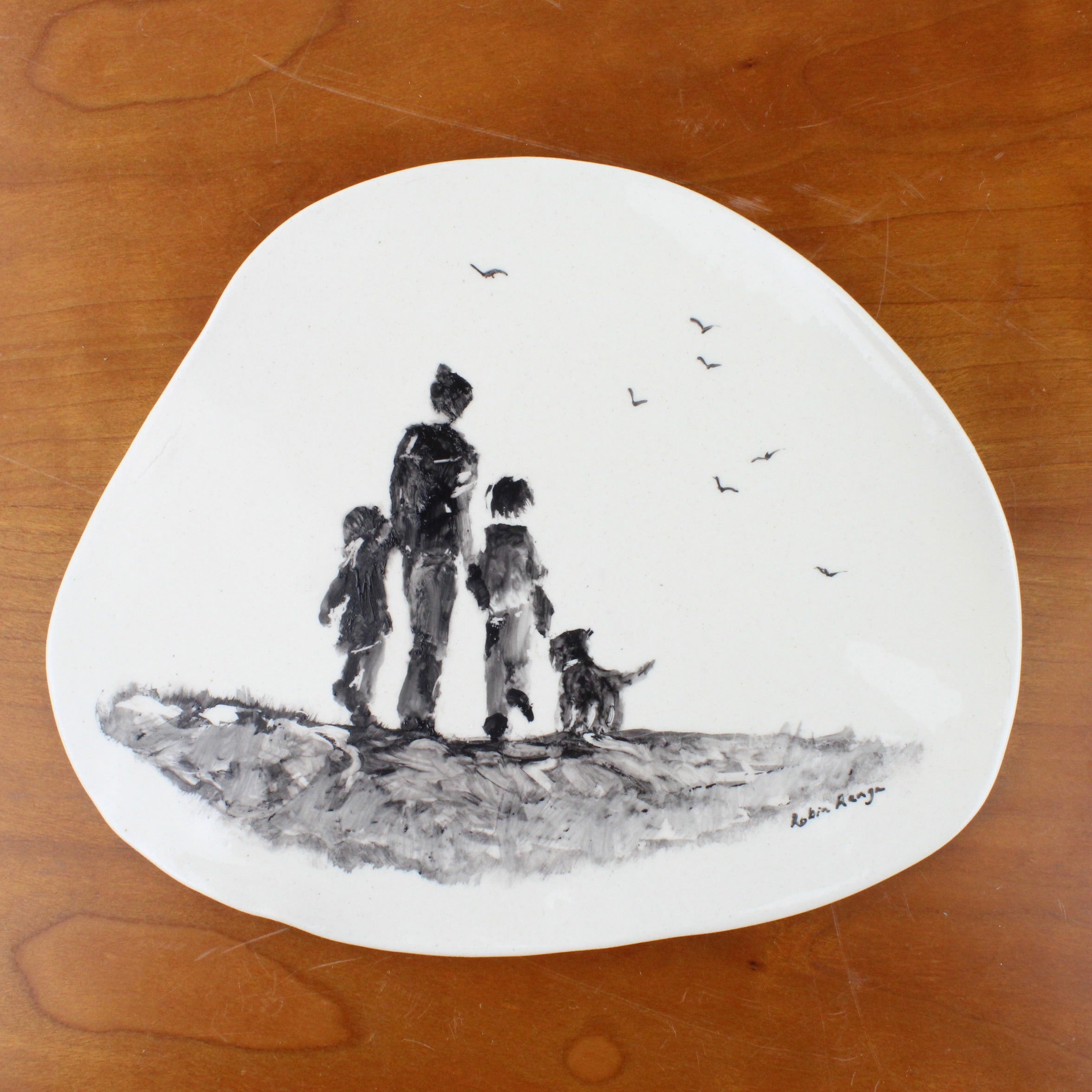 Hand painted ceramic wall plaques are silhouette "snaps of time" that each tell their unique story.