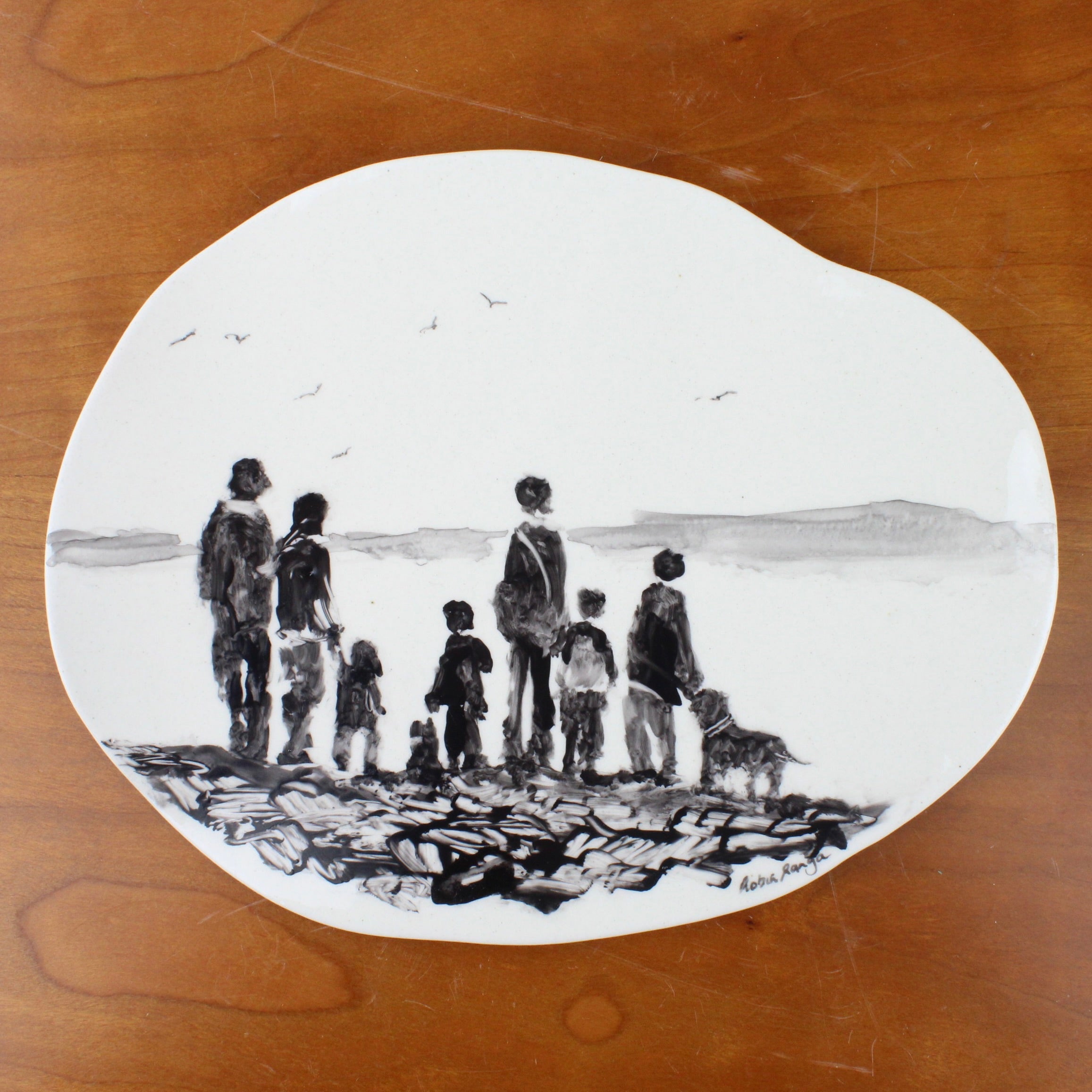 Hand painted ceramic wall plaques are silhouette "snaps of time" that each tell their unique story.