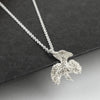 Crafted in highly polished sterling silver, the piece measures approximately 15mm x 20mm on a 450mm sterling silver chain.