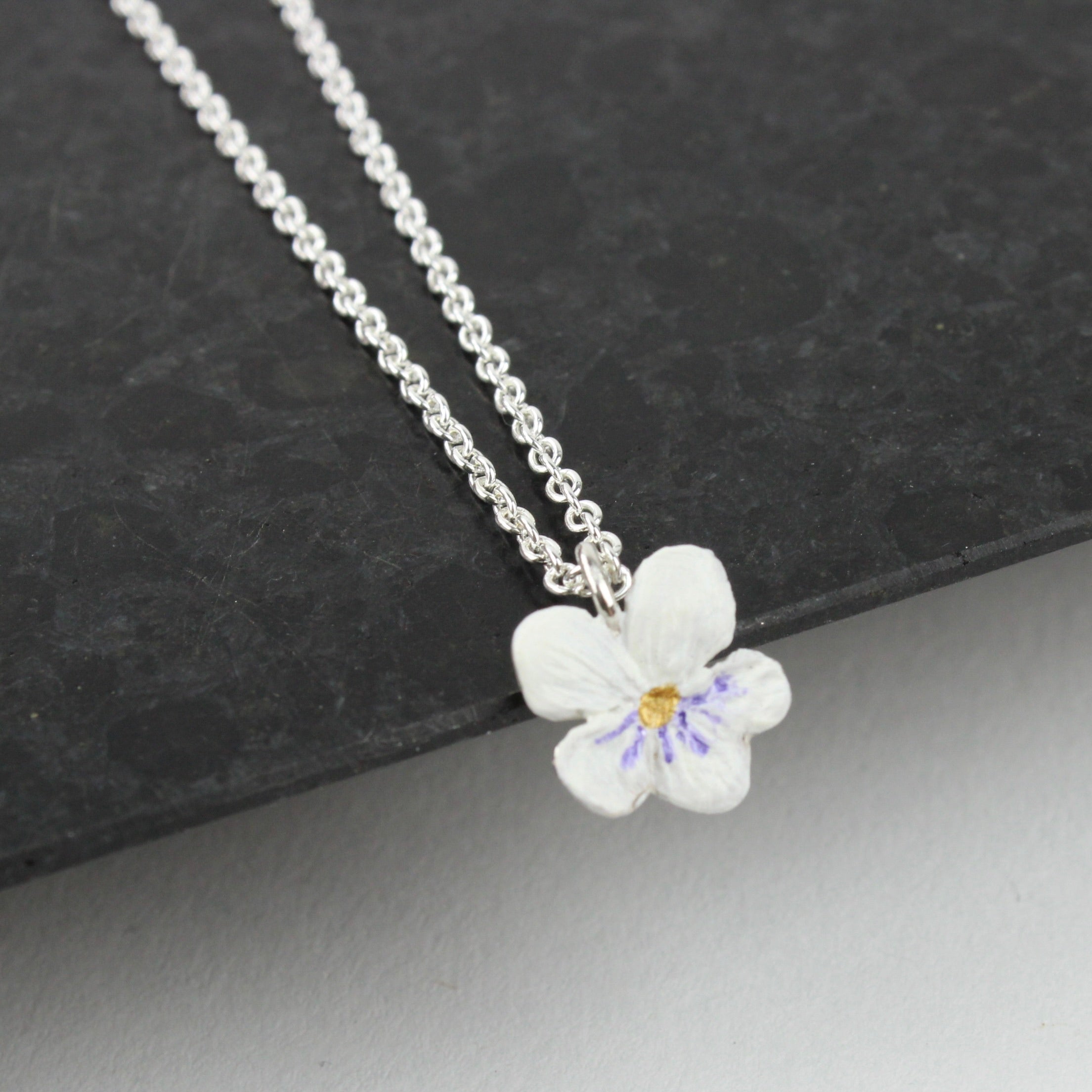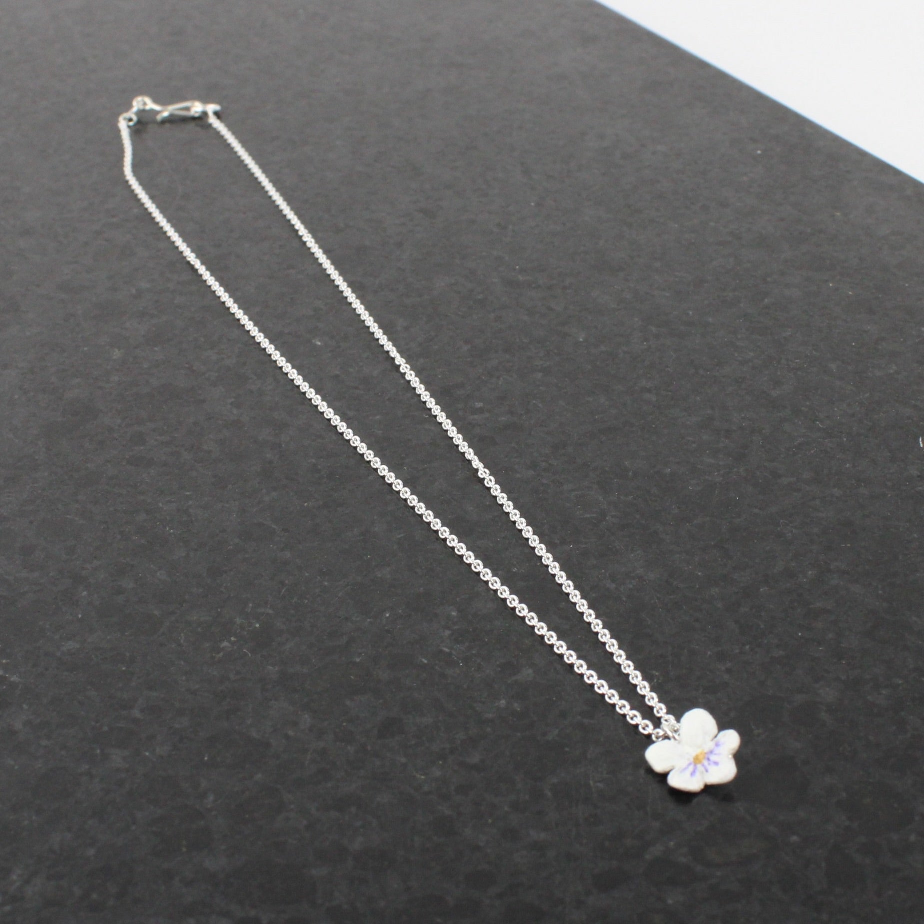 Sterling silver 11mm x 10mm flower, hand painted with porcelain paint on sterling silver on sterling silver 450mm chain.