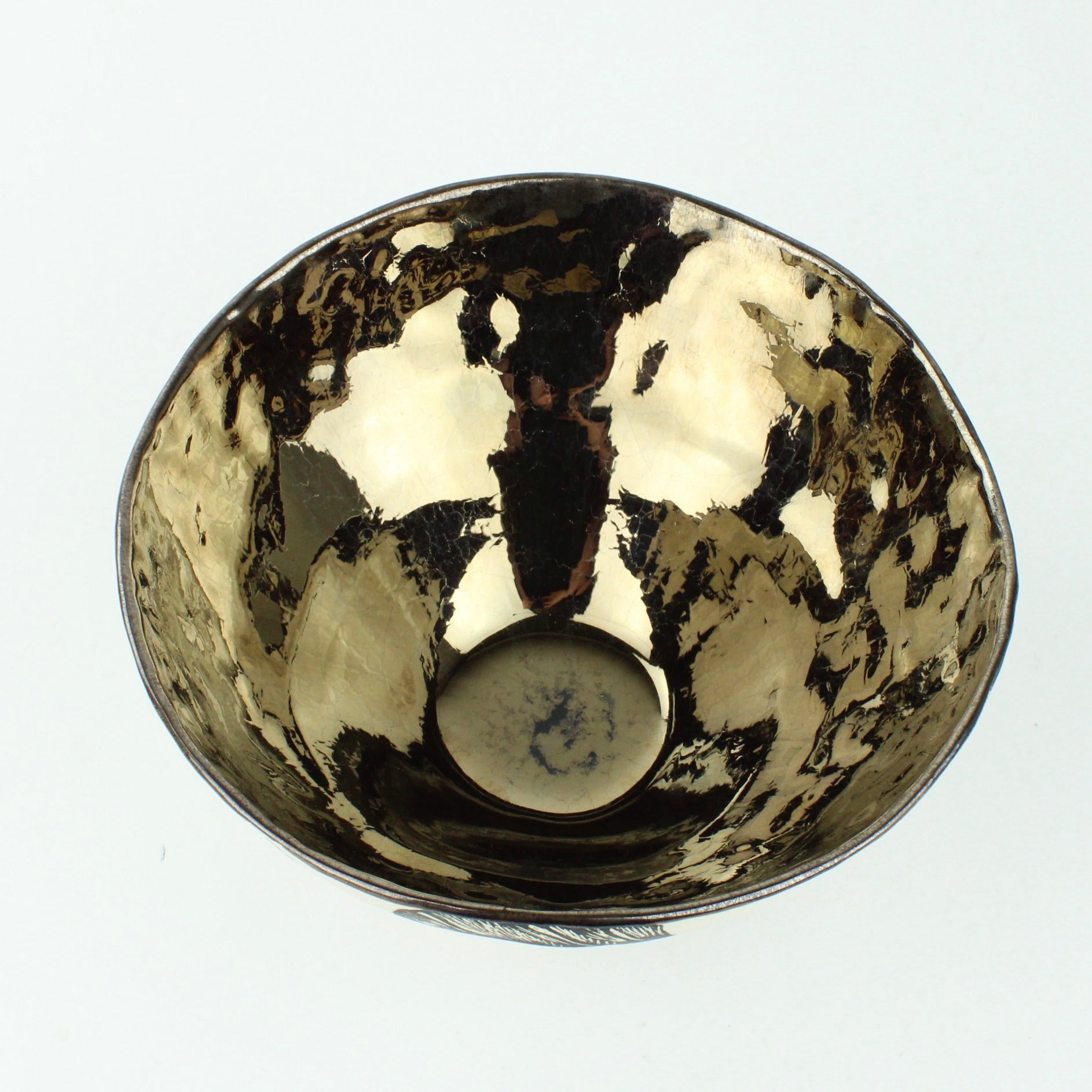 *This sculptural piece is not intended for use with water or food, as its golden interior glaze contains copper and manganese and moisture may seep through and could cause staining.