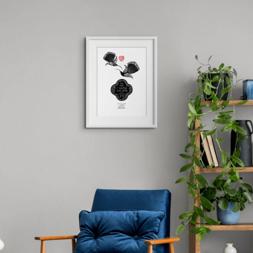 Amber Smith is a ceramic artist and printmaker honouring her ties to Ngāti Wai through her child. Her words in te Reo Māori and English are wise and up-lifting, giving a beautiful feeling to the art of love, hope and self-worth - a positive message, to gift yourself or another.