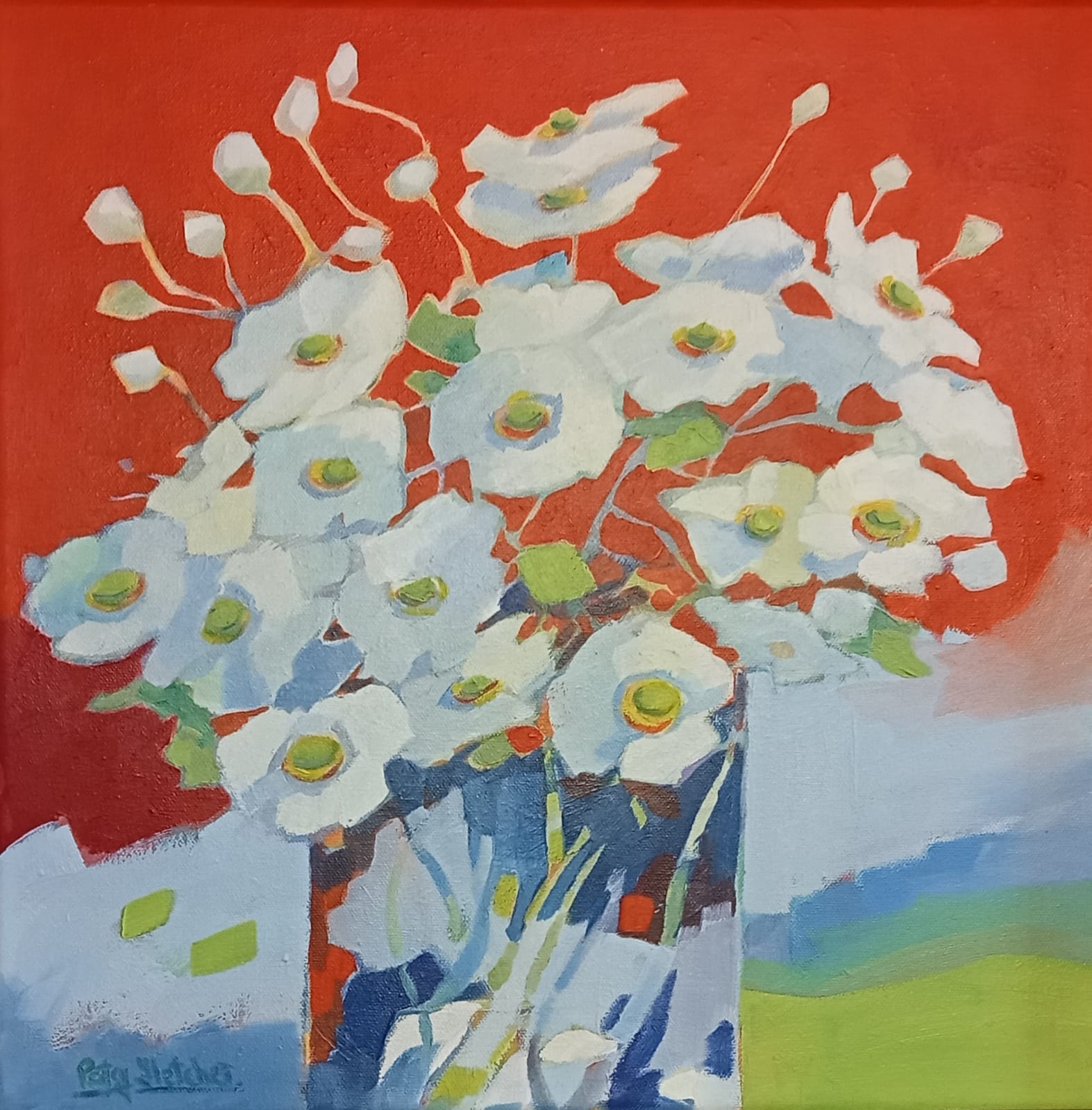 Patsy Fletcher's art bursts with vivid colour and thoughtful symbolism. Her work captures the beauty of everyday life, offering a sense of lightness and uplift in contrast to the weight of the modern world. Influenced by the Vanitas tradition of still life painting, she takes classic symbols of impermanence—like flowers—and reinvents them with intense, vibrant tones. In doing so, she shifts the focus from loss and decay to celebration and vitality, breathing new life into these age-old themes.