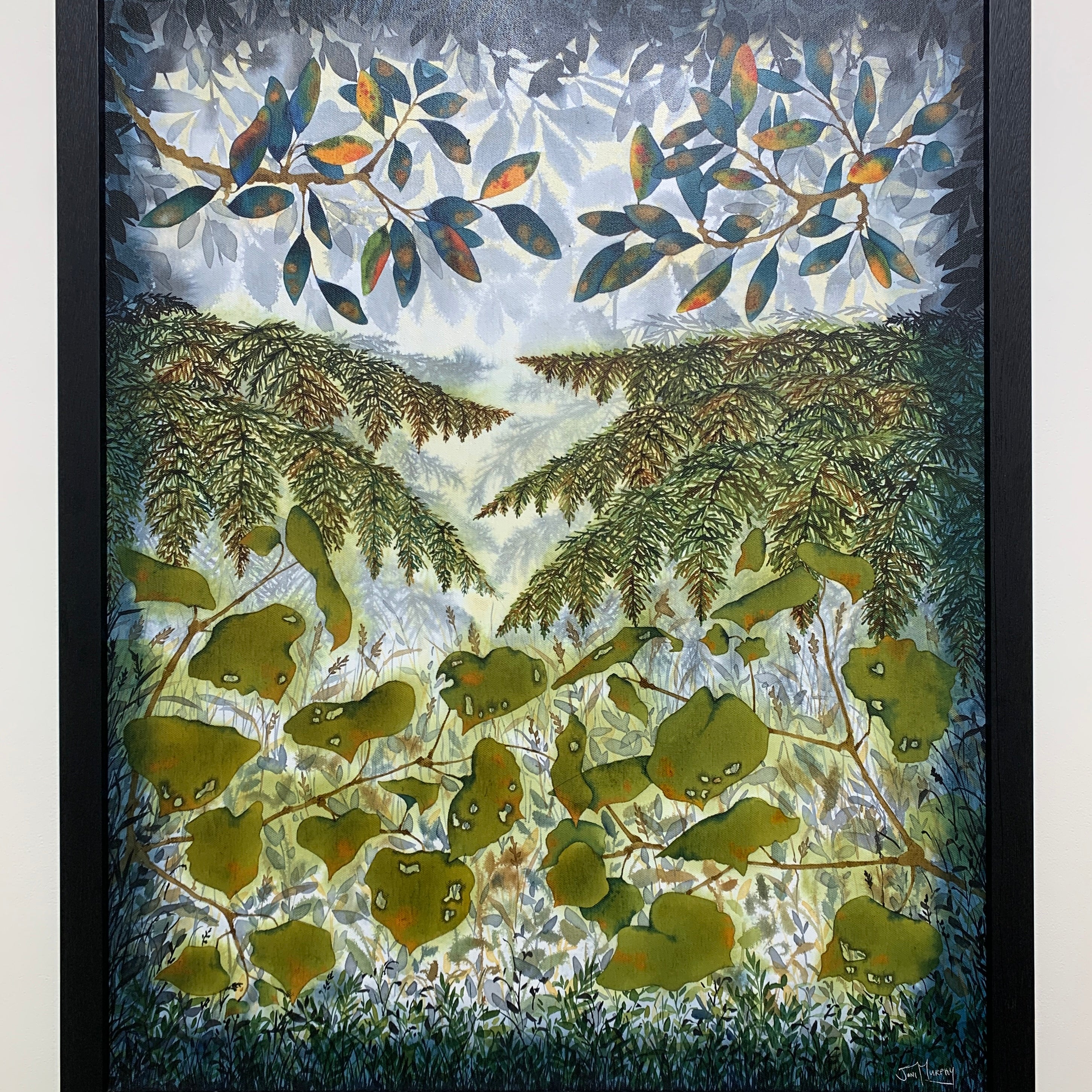 Joni Murphy draws deep inspiration from the natural world, informed by living specimens gathered from her immediate surroundings. Through close observation and seasonal recording using watercolour and ink, she works on a large scale, creating tranquil yet dynamic pieces on canvas. Her multi-layered compositions invite the viewer to step into each scene, offering a sense of immersion and quiet energy.