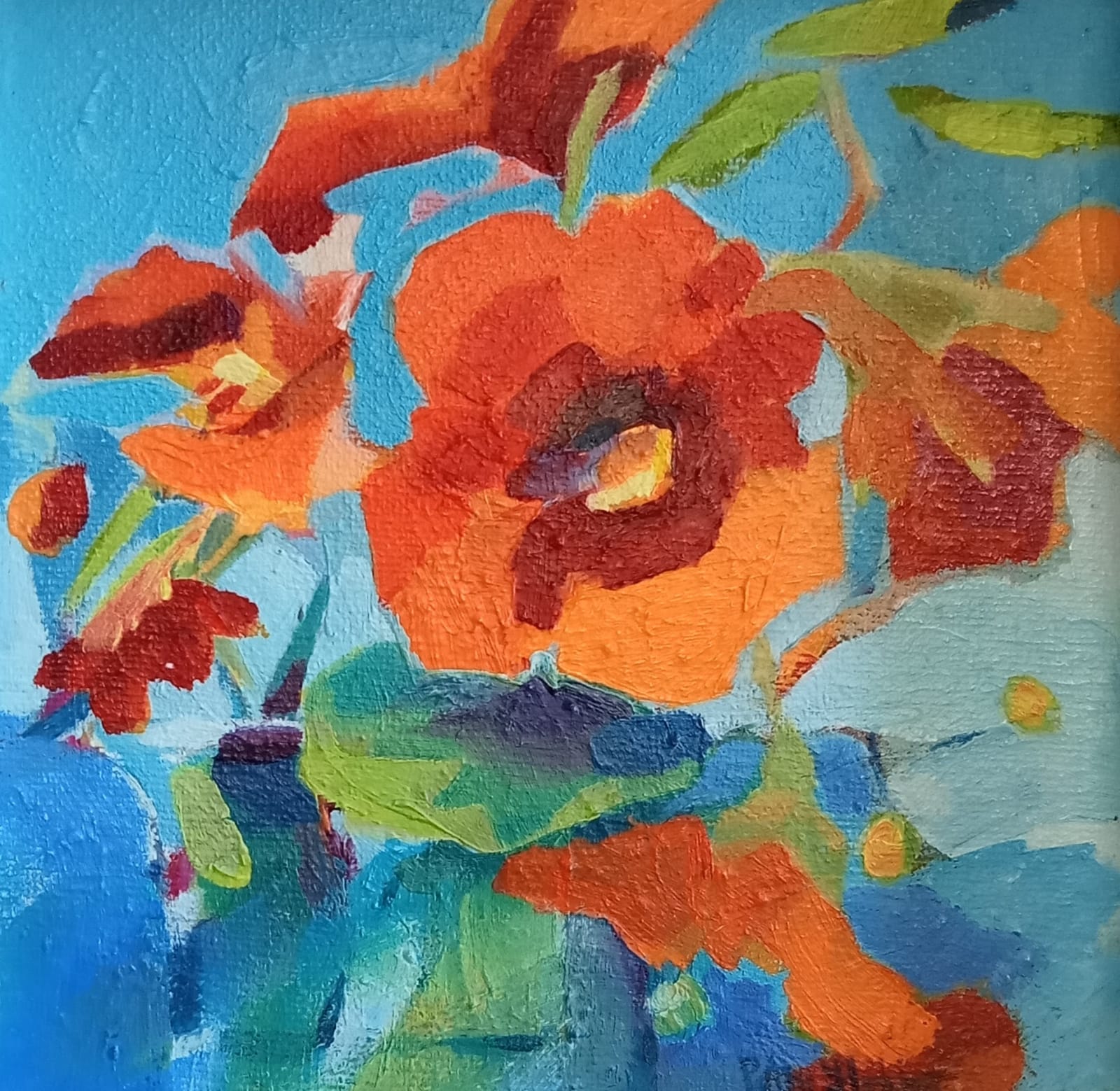 Patsy Fletcher's art bursts with vivid colour and thoughtful symbolism. Her work captures the beauty of everyday life, offering a sense of lightness and uplift in contrast to the weight of the modern world. Influenced by the Vanitas tradition of still life painting, she takes classic symbols of impermanence—like flowers—and reinvents them with intense, vibrant tones. In doing so, she shifts the focus from loss and decay to celebration and vitality, breathing new life into these age-old themes.