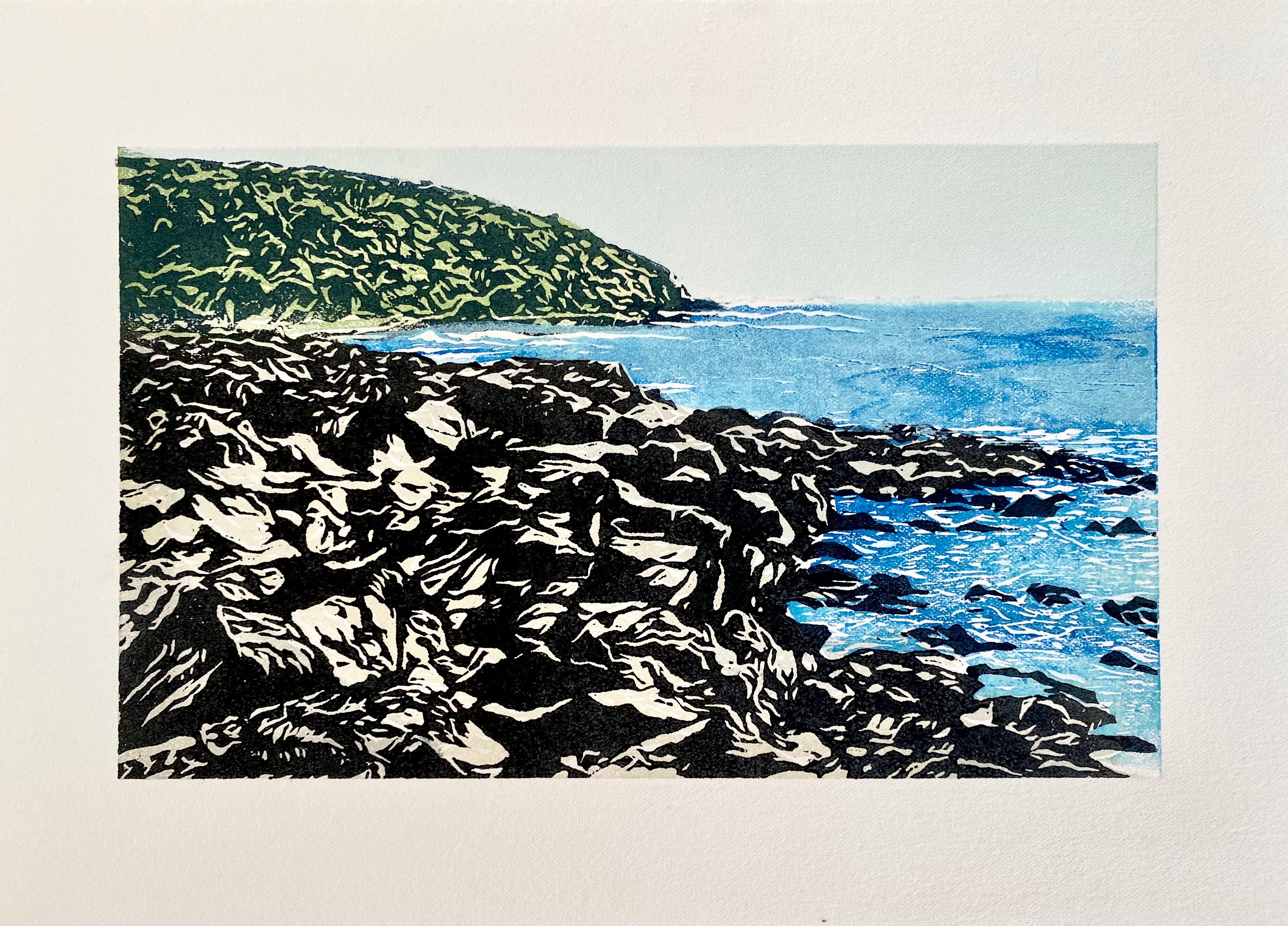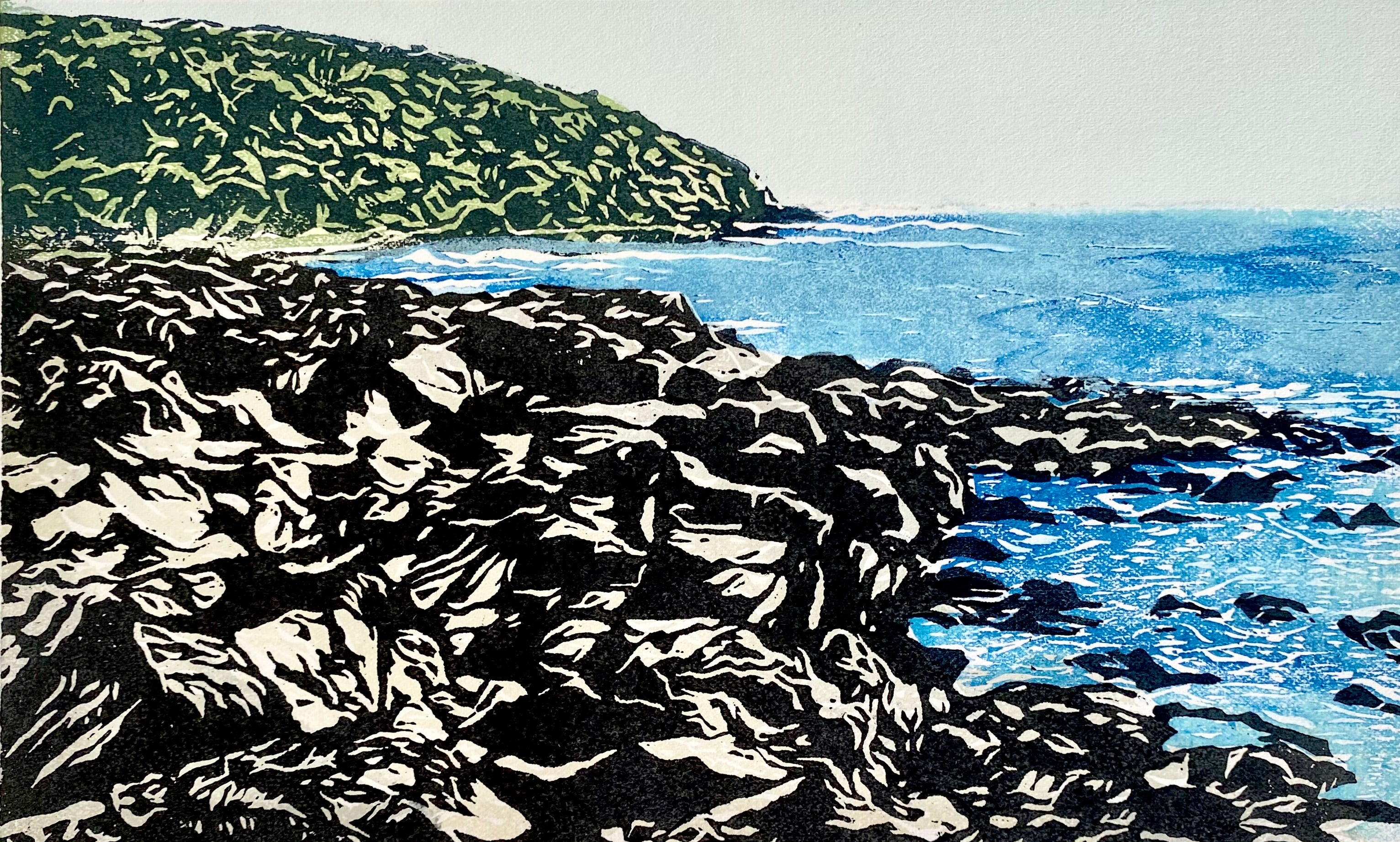 Travelling across the country continually fuels Tucker’s creative vision, with the landscapes, energy, and beauty of Aotearoa reflected in each piece. Her practice centres on traditional Japanese woodblock carving and hand-printing techniques. Each colour in a work is printed from a separately carved and inked block of wood, with the final image brought together by printing a key block which often contains the detailed line work over the layered colours.