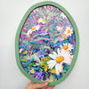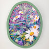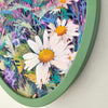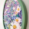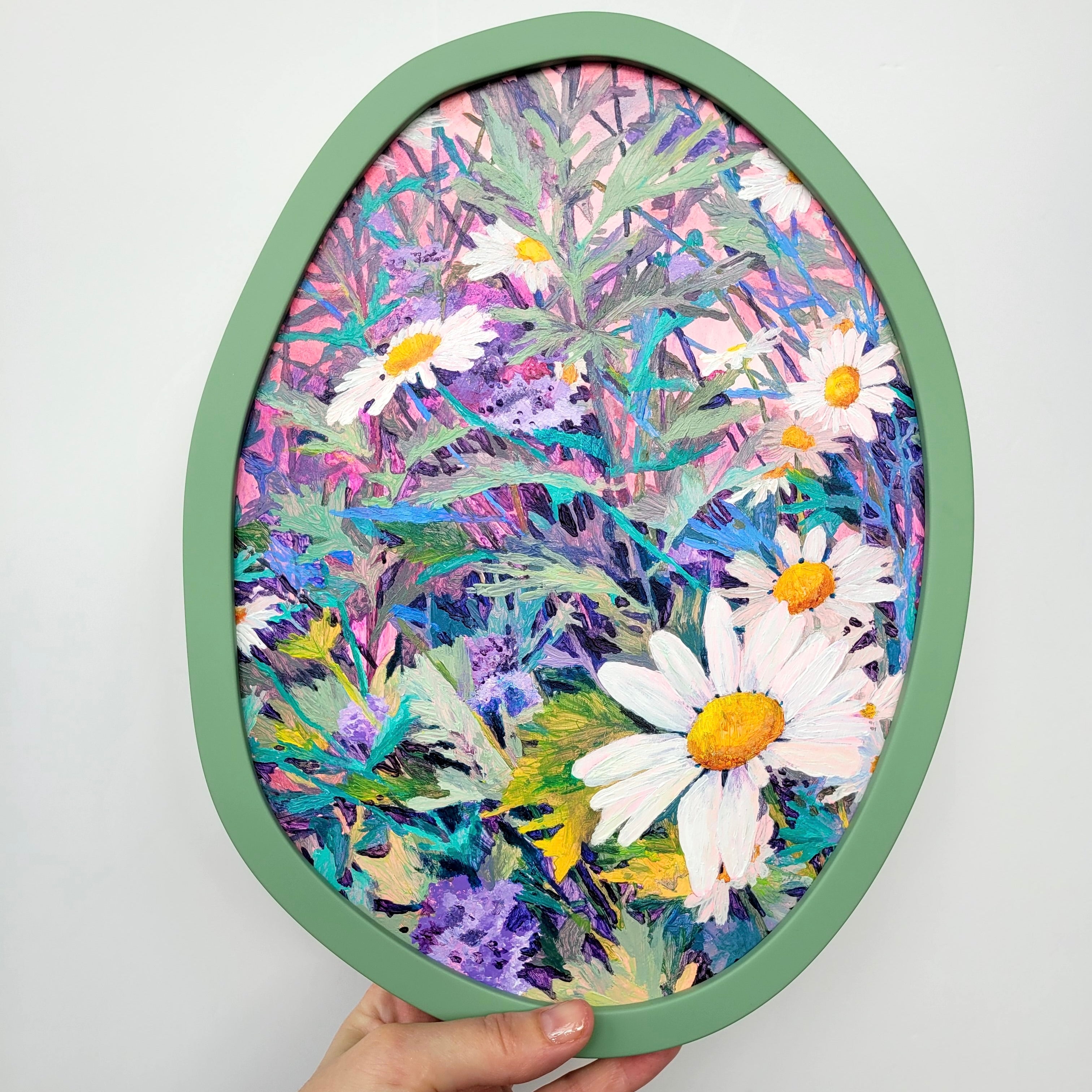 An untamed garden alive with white daisies and pops of pink blooms, its uniquely shaped panel making you feel as though you’re peeking into a moment of untamed beauty