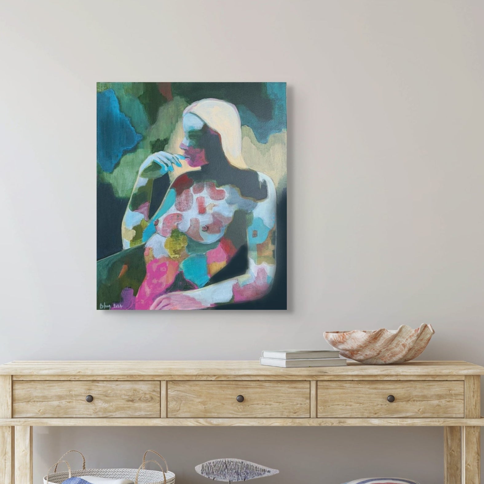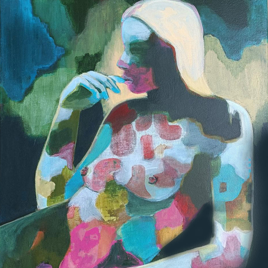 Her recent works stretch toward abstraction rather than depicting the exterior façade, Tanya’s paintings offer a glimpse into the inner workings of humanity. Each portrait symbolic of the interior landscape, where the interplay of light, colour, form and pattern mirrors the ebbs and flows of emotion and experience. A visual tapestry that captures the somatic experience unique to us all.