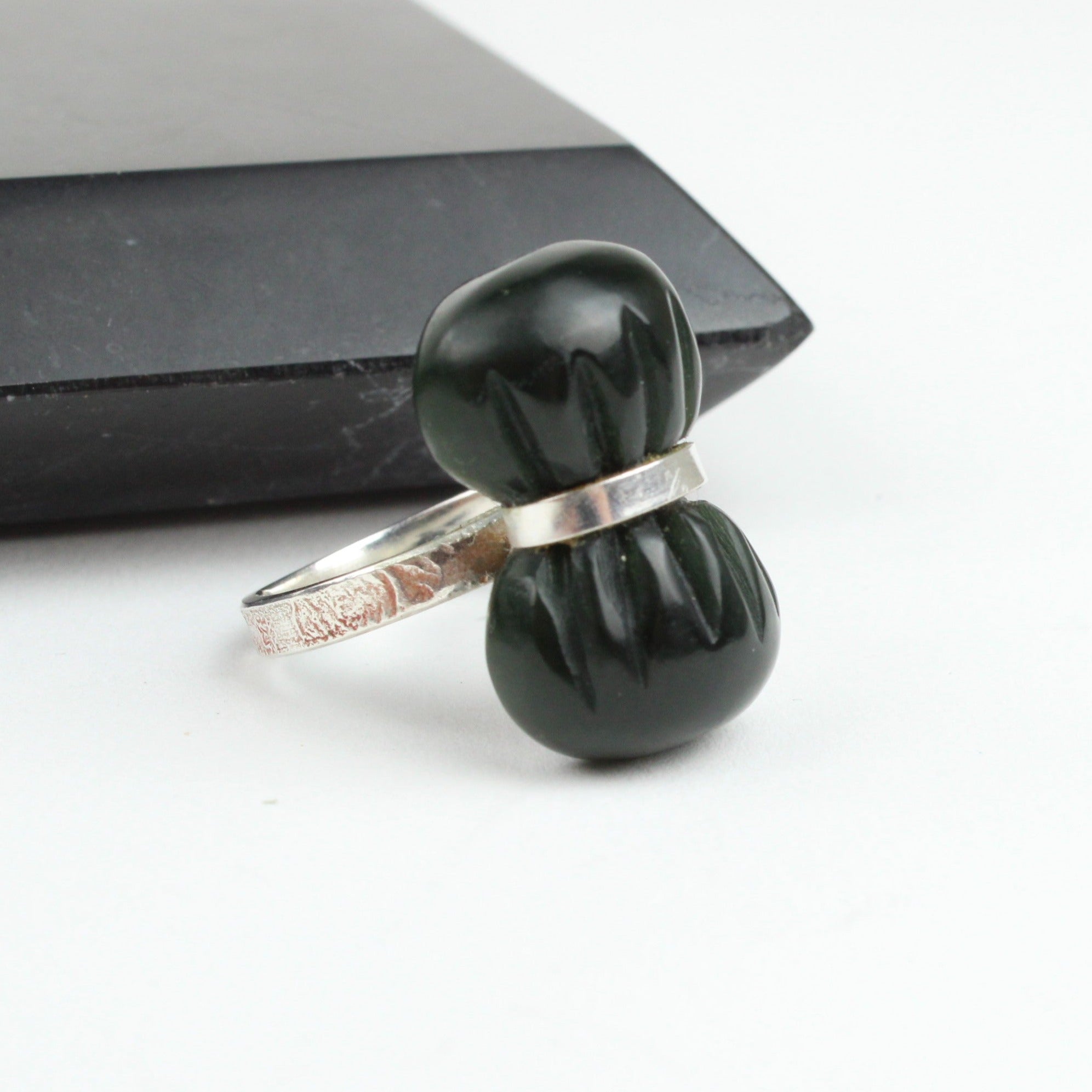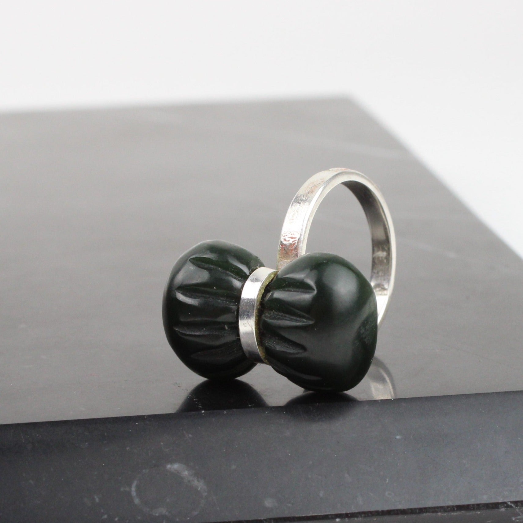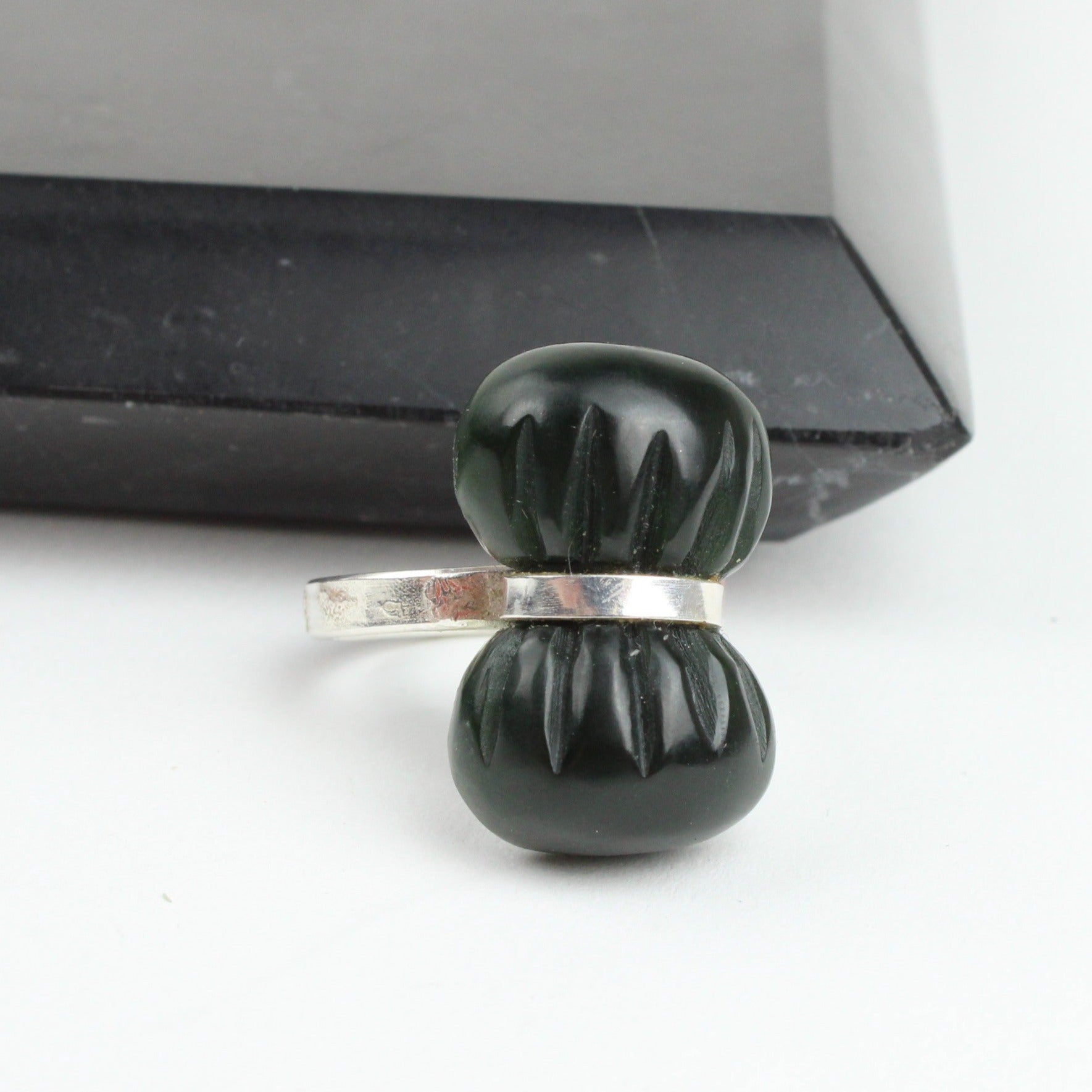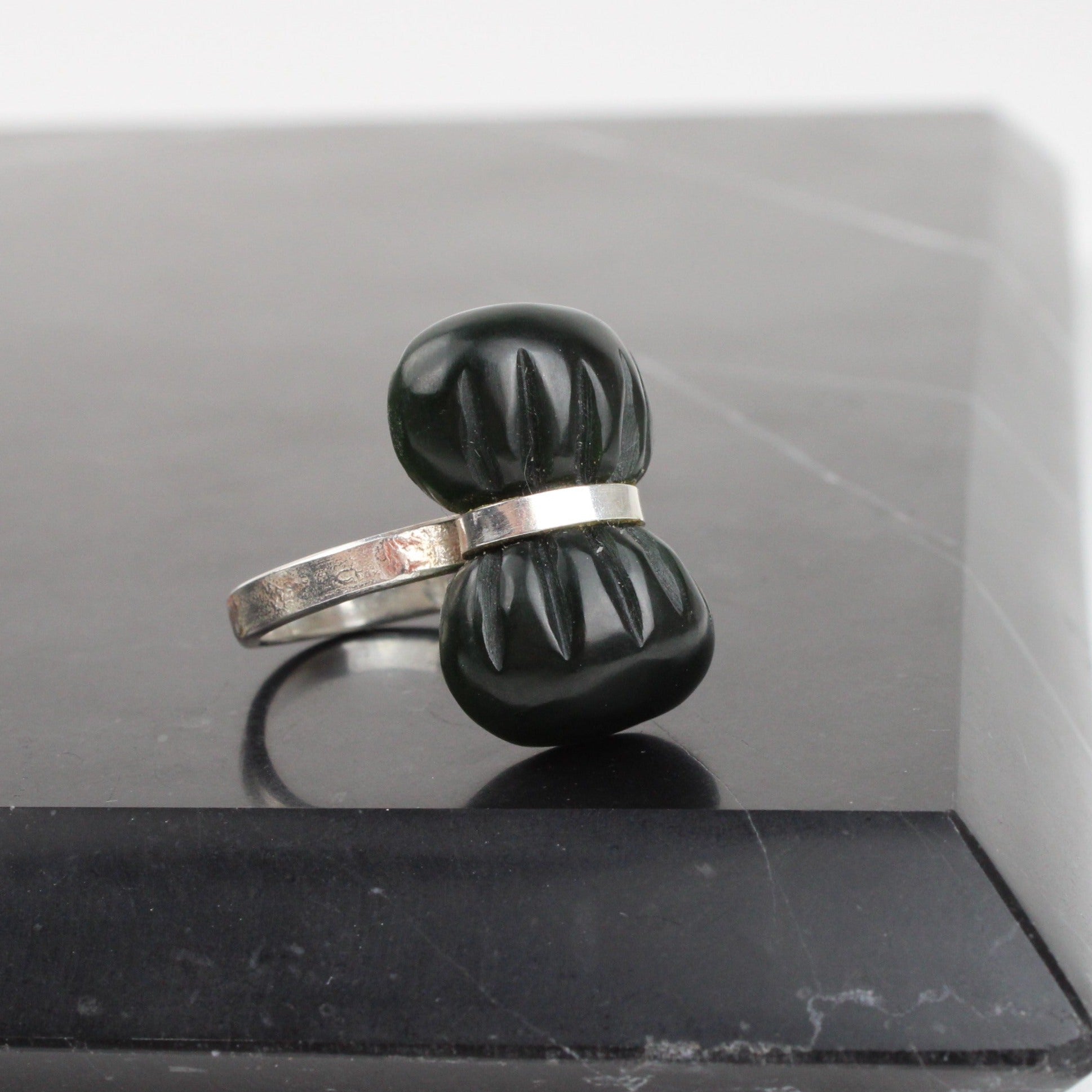 New Zealand Marsden Jade Greenstone and sterling silver Kopepe (squeeze me) ring