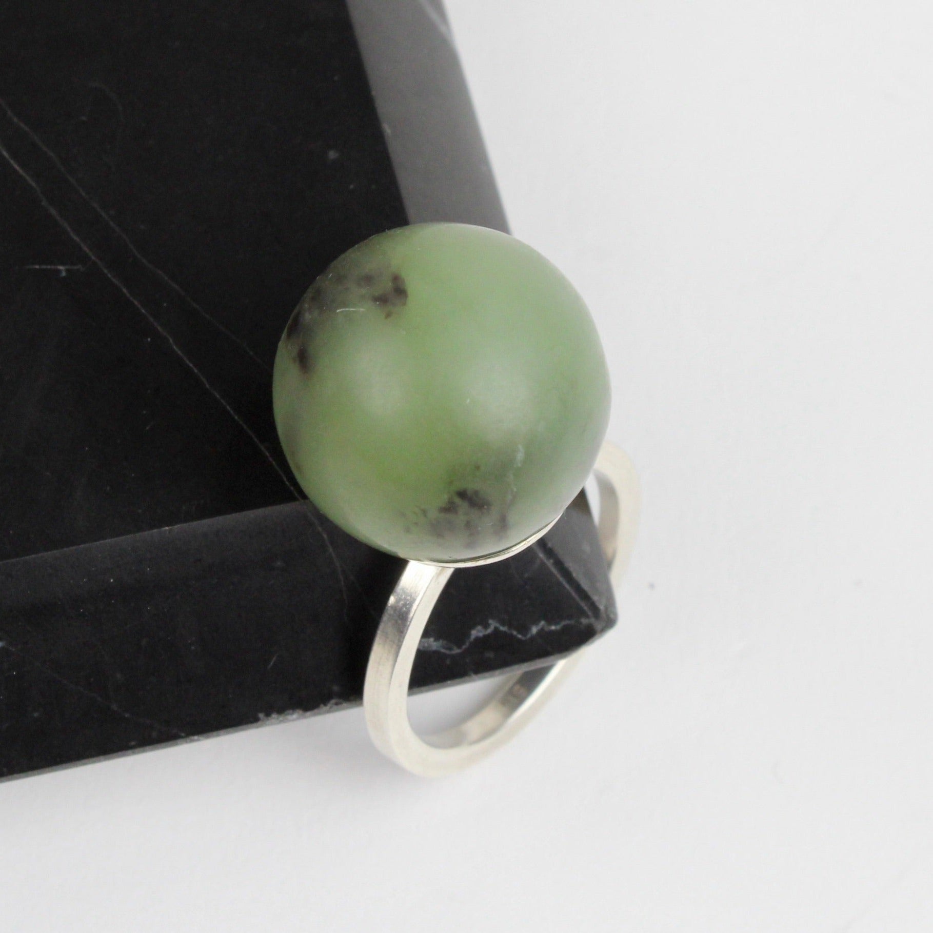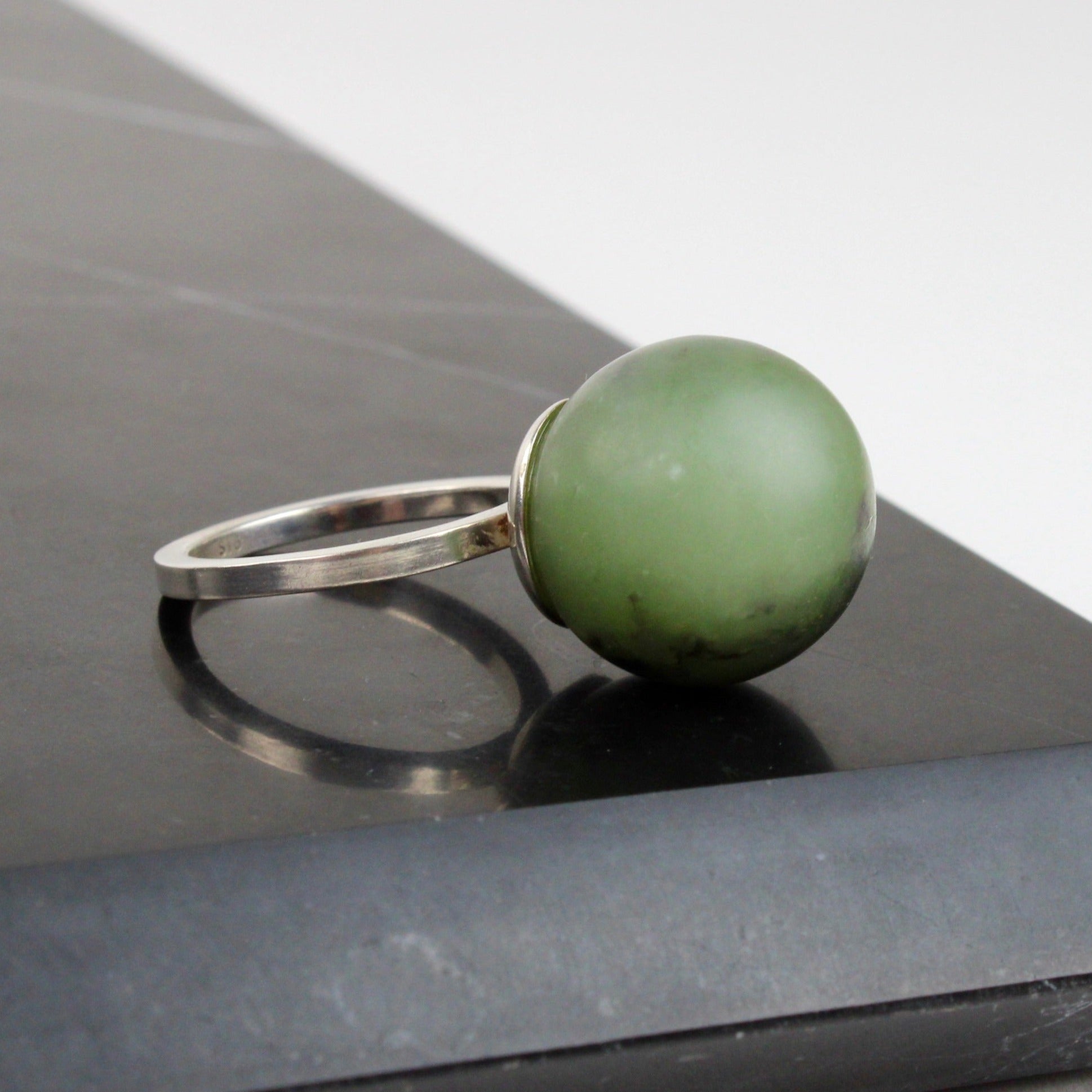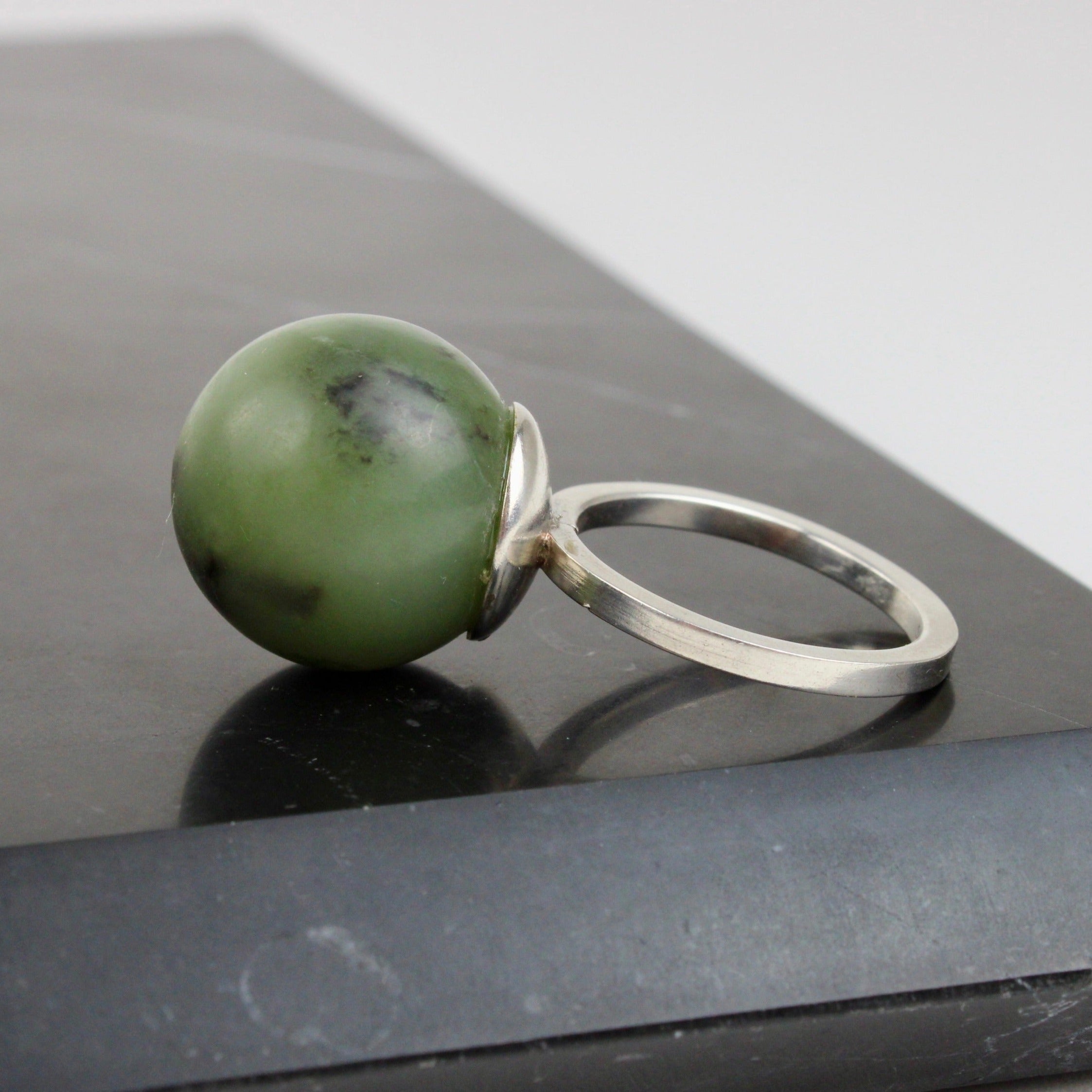 New Zealand Inanga Greenstone and sterling silver Te Whanau o Tamanui-te-ra (The solar system) ring