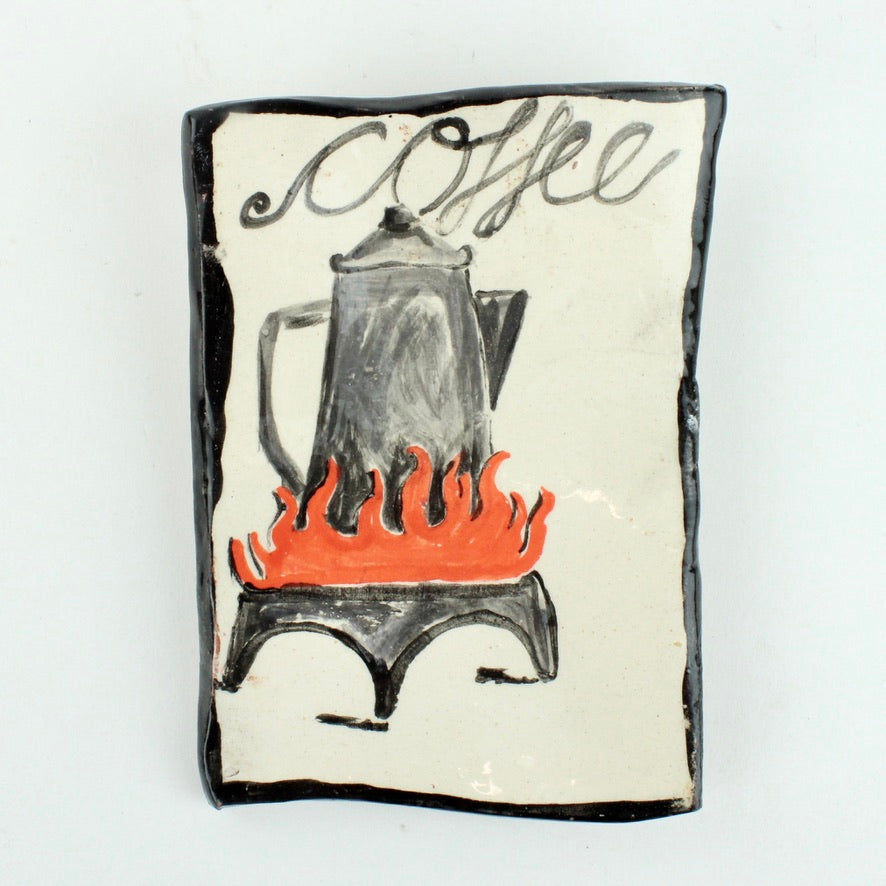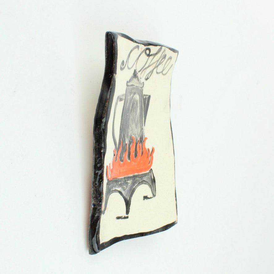 One-off handmade ceramic tile made with the artists quirky sense of humour. Open to interpretation.