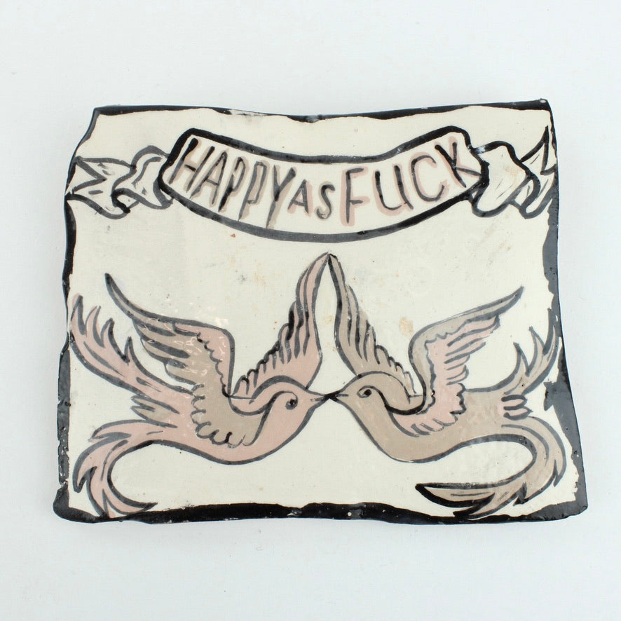 One-off handmade ceramic tile made with the artists quirky sense of humour. Open to interpretation.