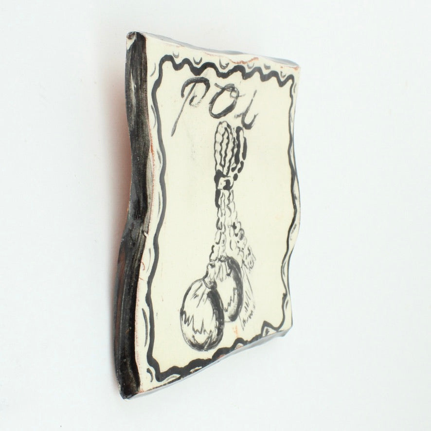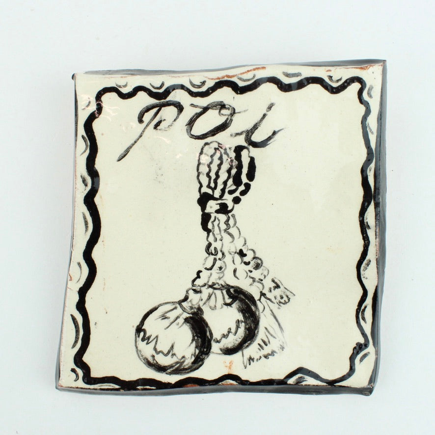 One-off handmade ceramic tile made with the artists quirky sense of humour. Open to interpretation.