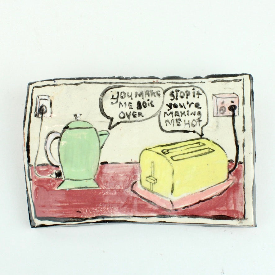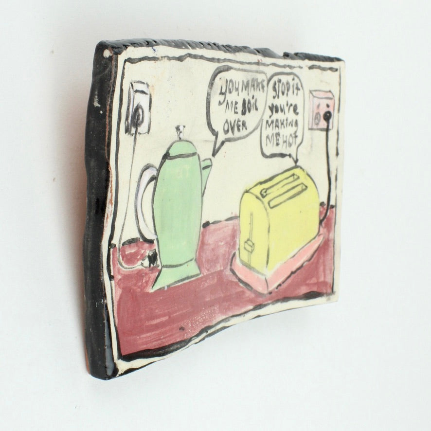 One-off handmade ceramic tile made with the artists quirky sense of humour. Open to interpretation.