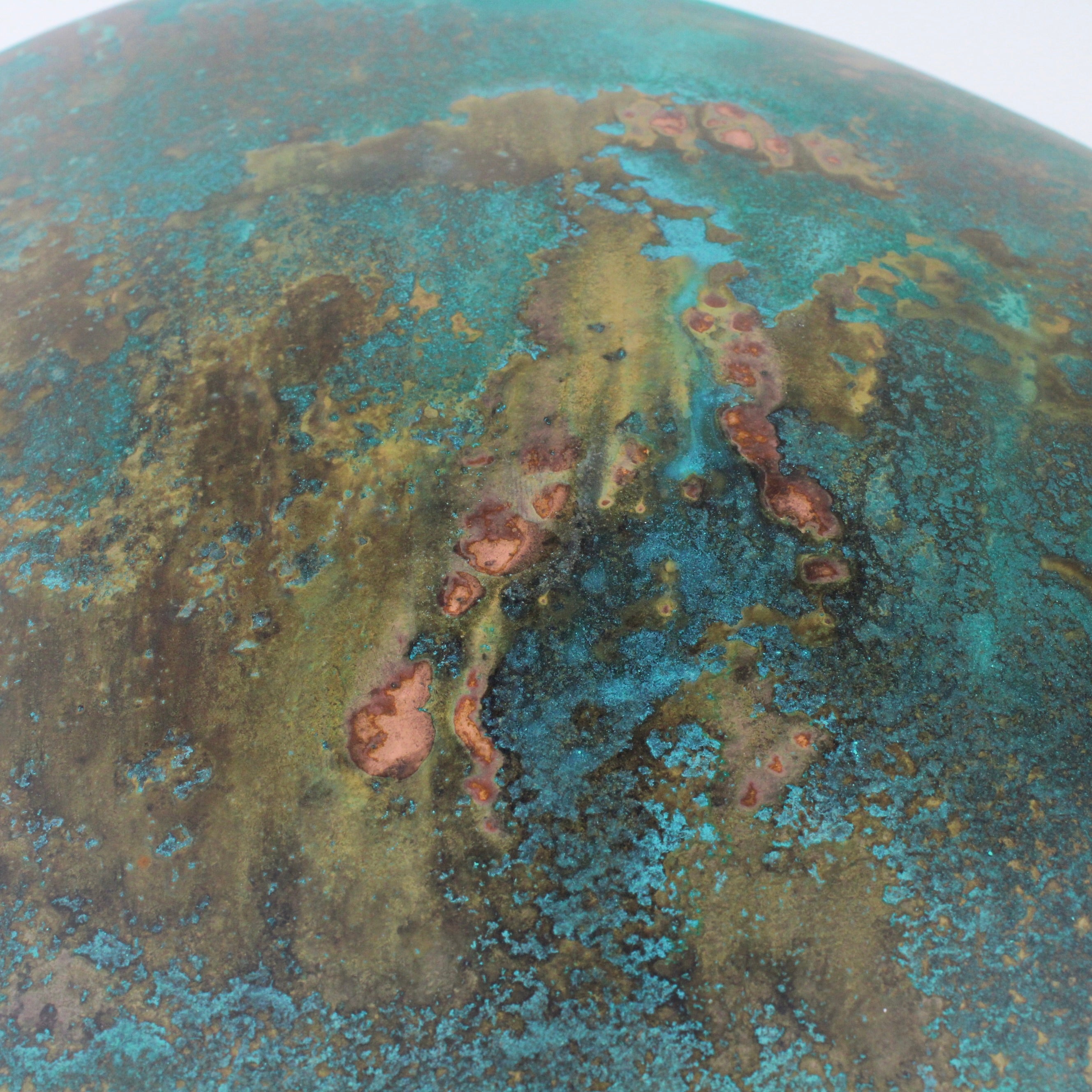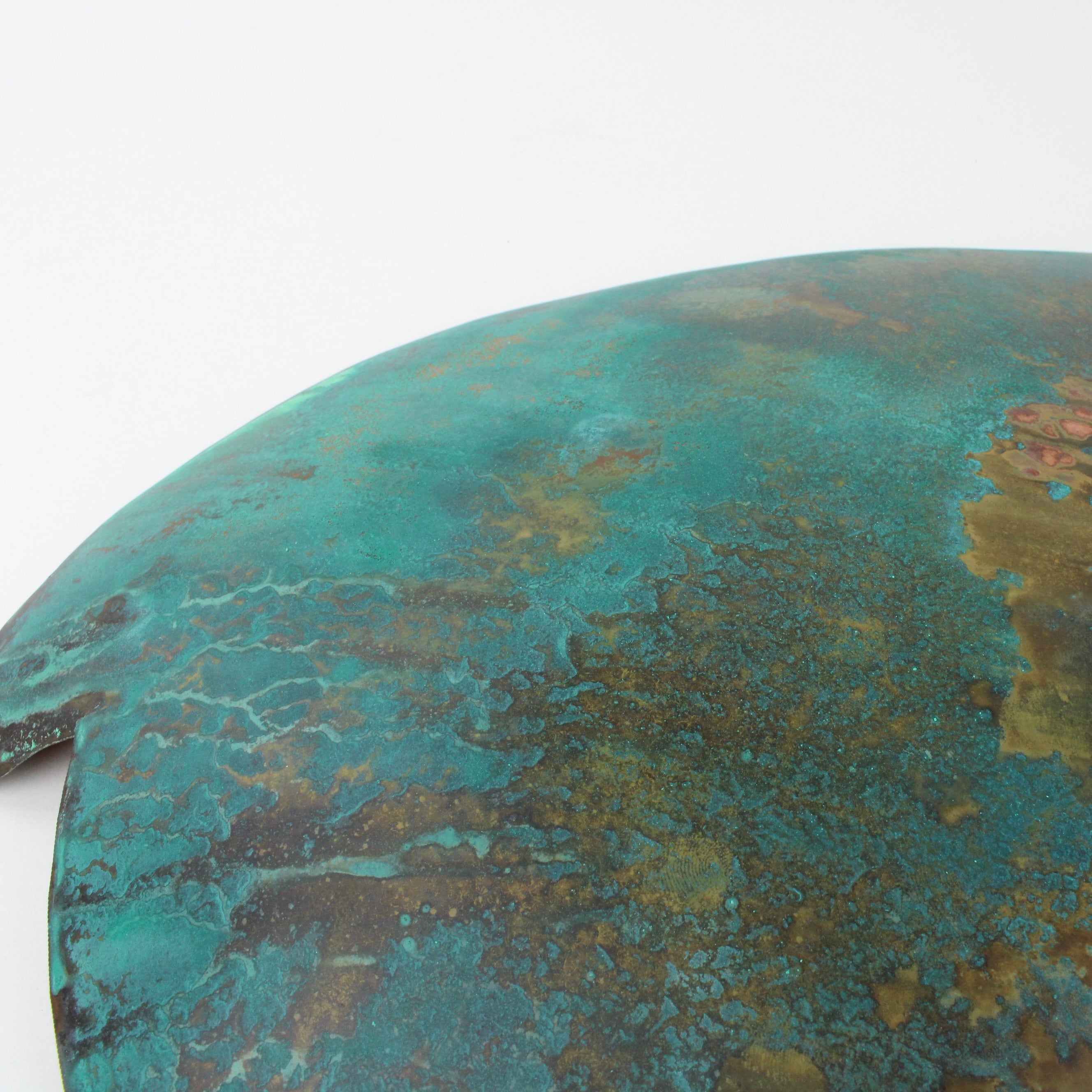 Hand sculpted copper and coated with protective finish