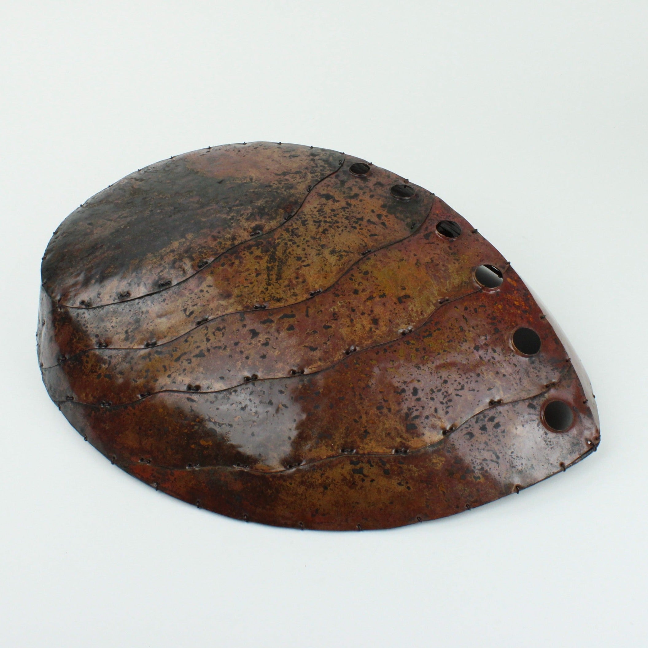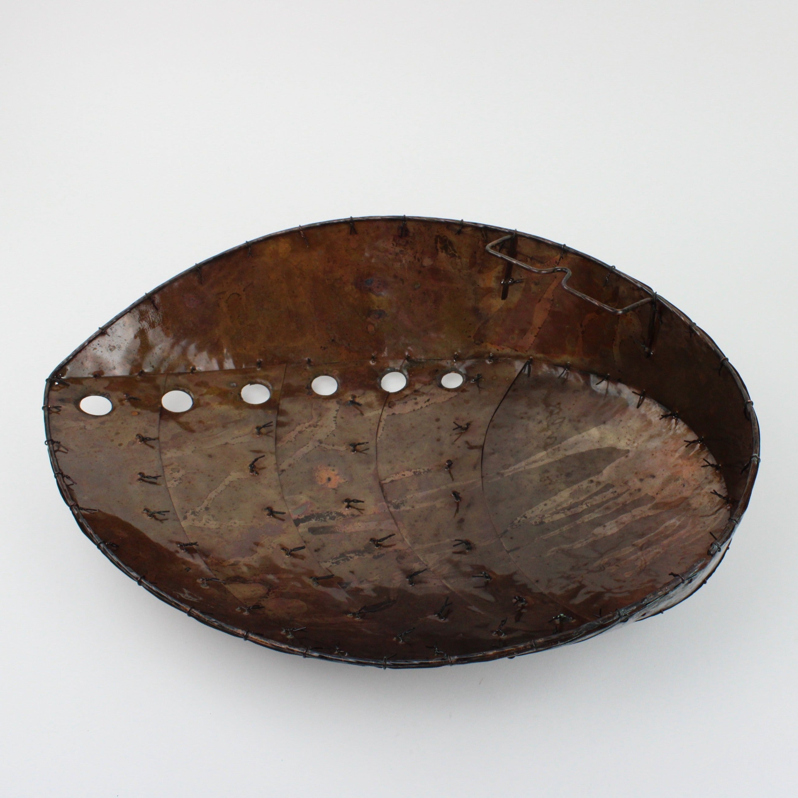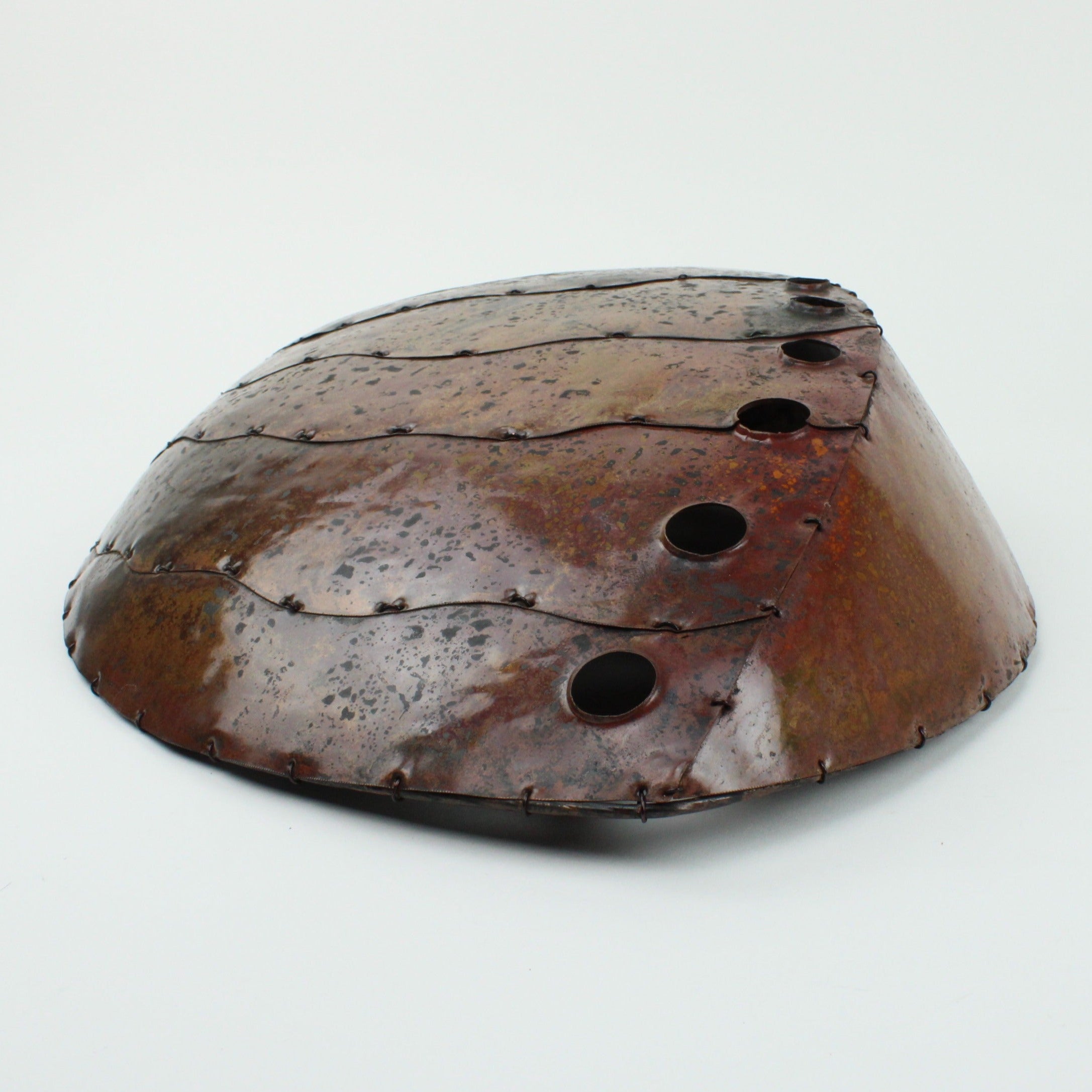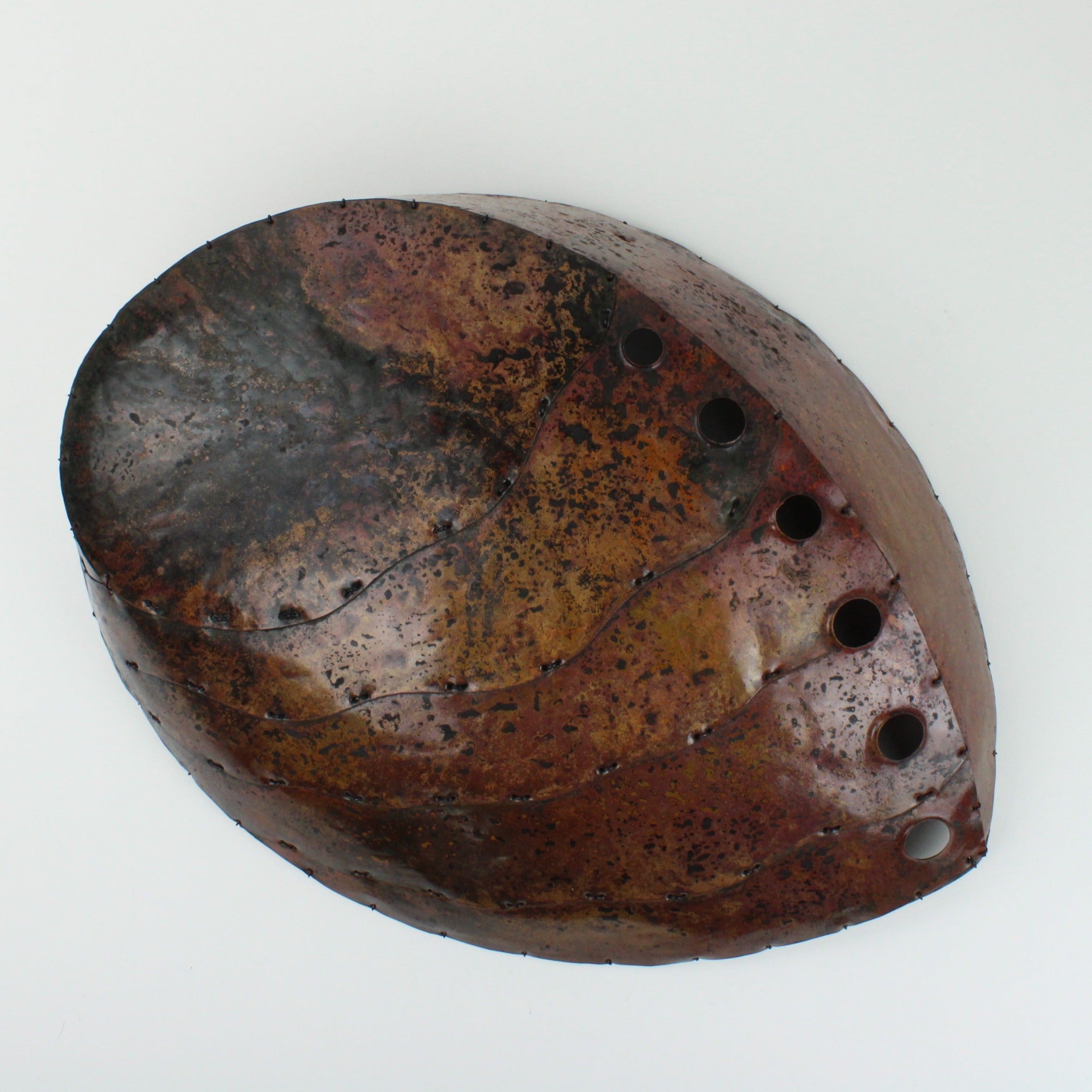 Daniel 'sews' each piece of sculpted copper together using copper wire and coats with protective finish