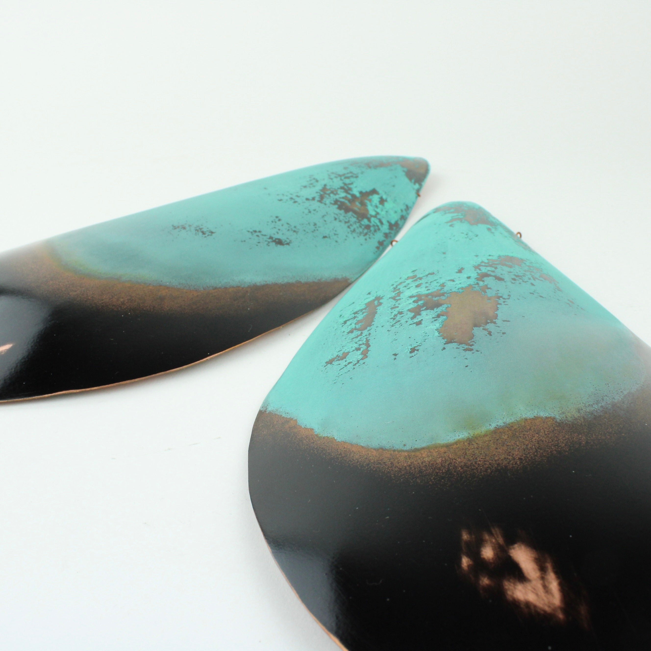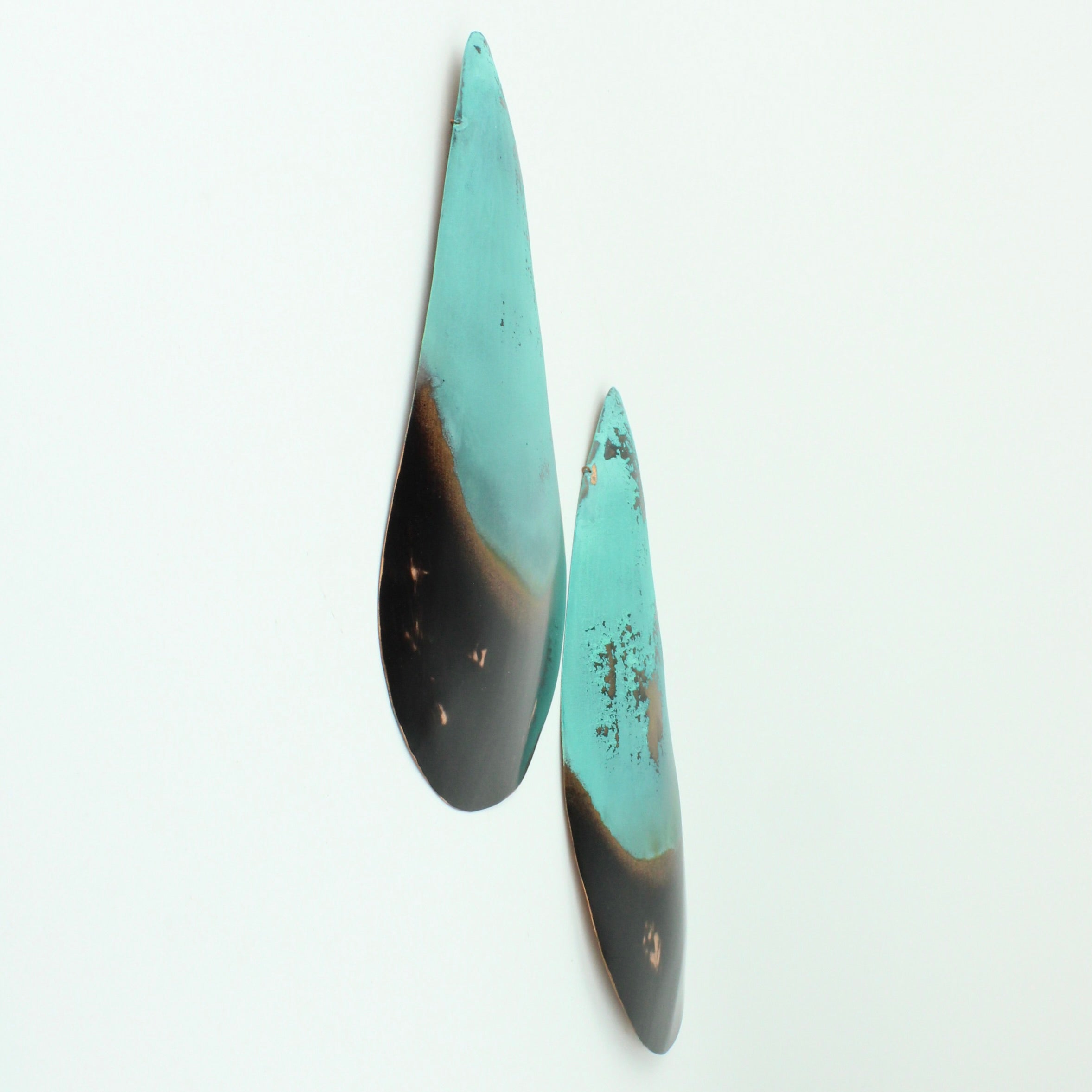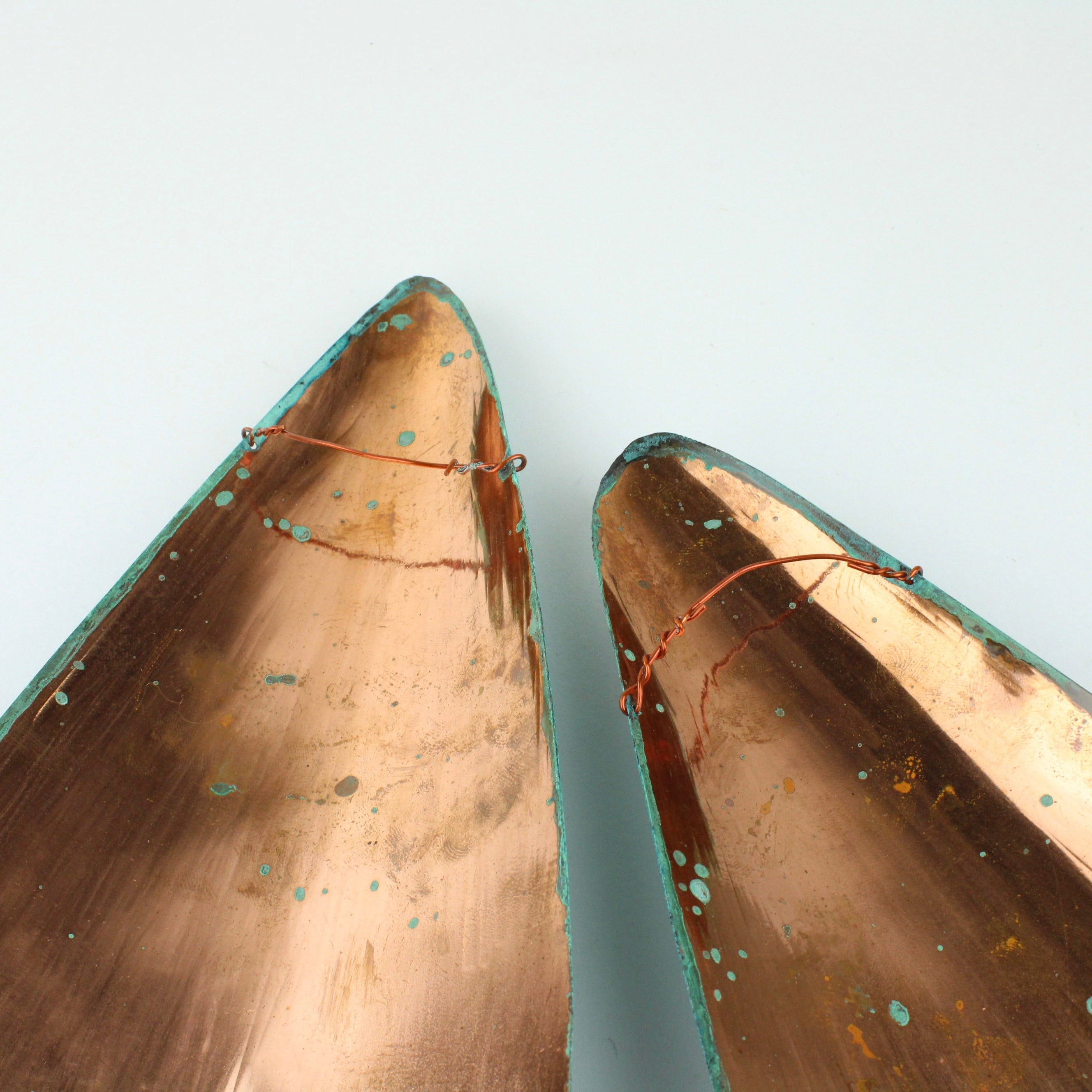 Each wall hung shell is hand sculpted copper and coated with protective finish