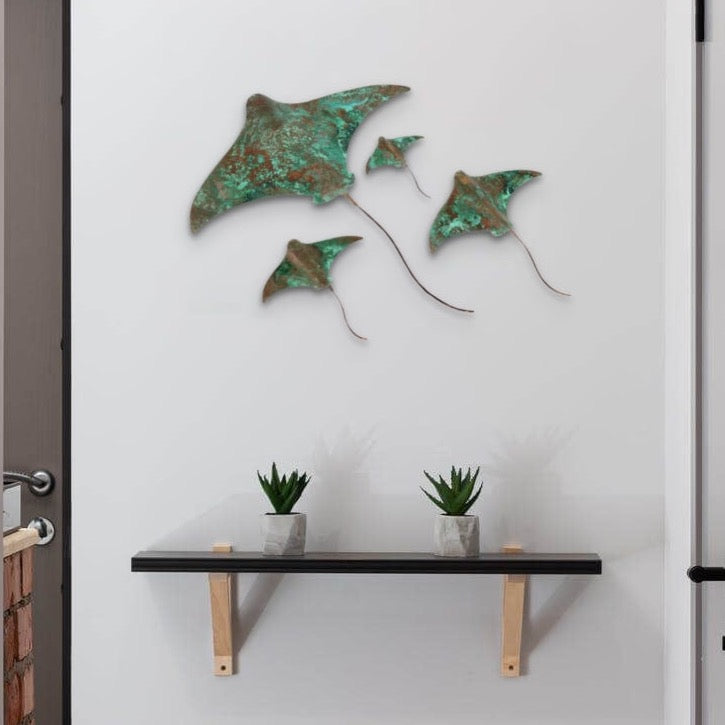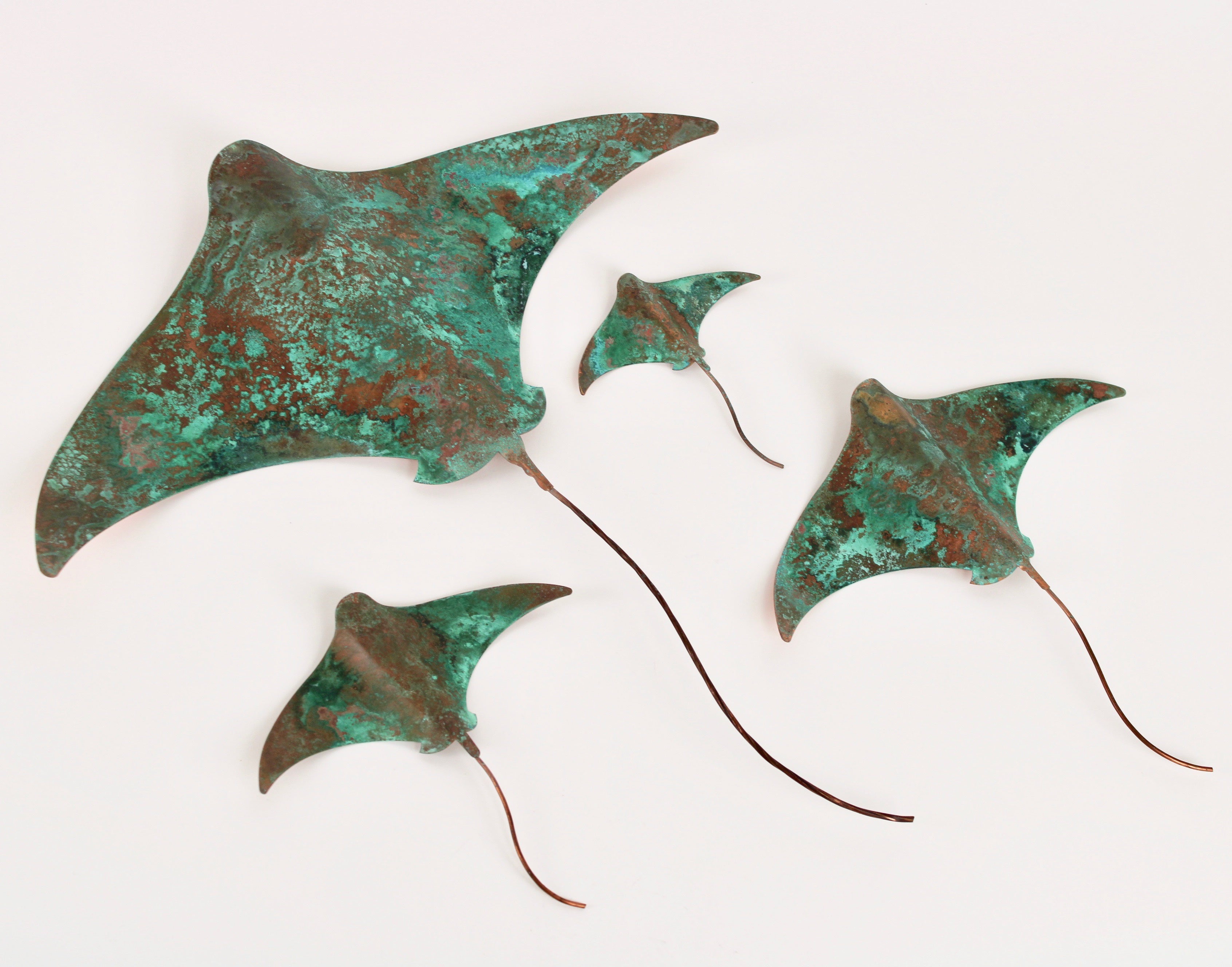 Daniel uses sheet copper to make each wall hung stingray and coats with protective matt finish
