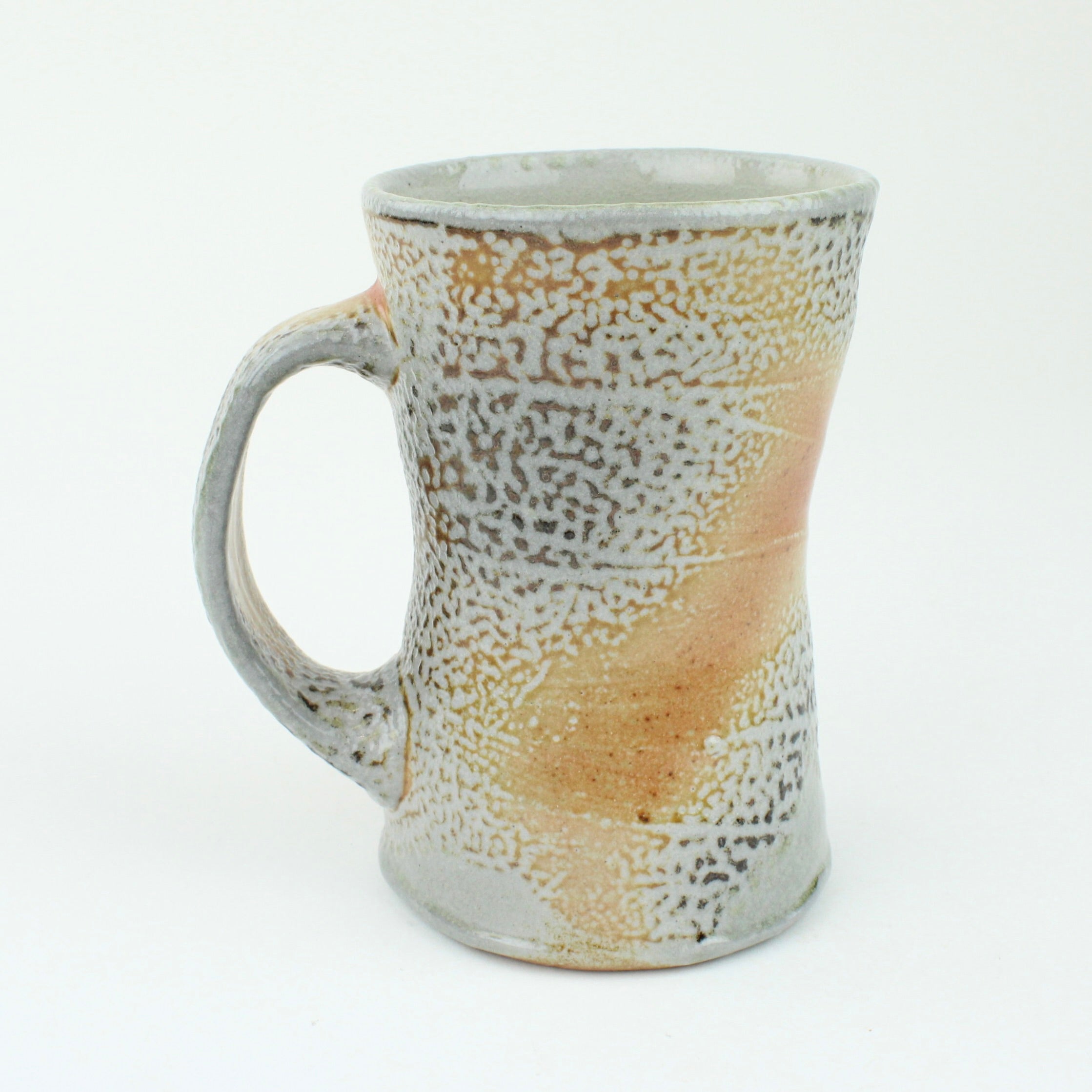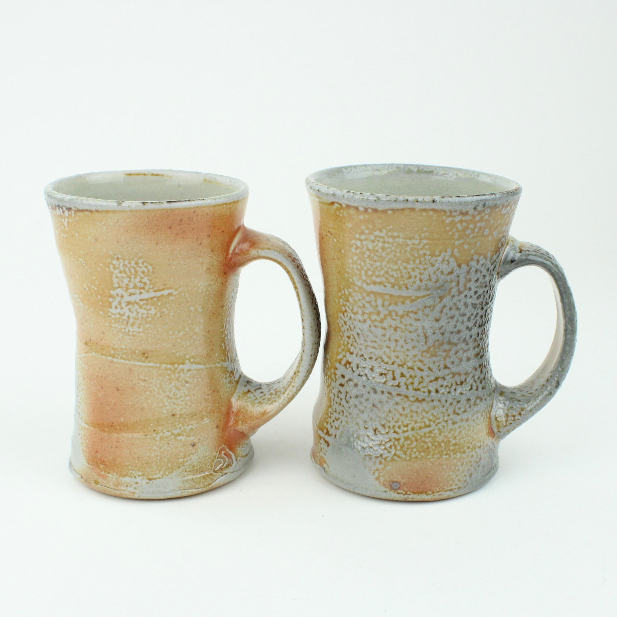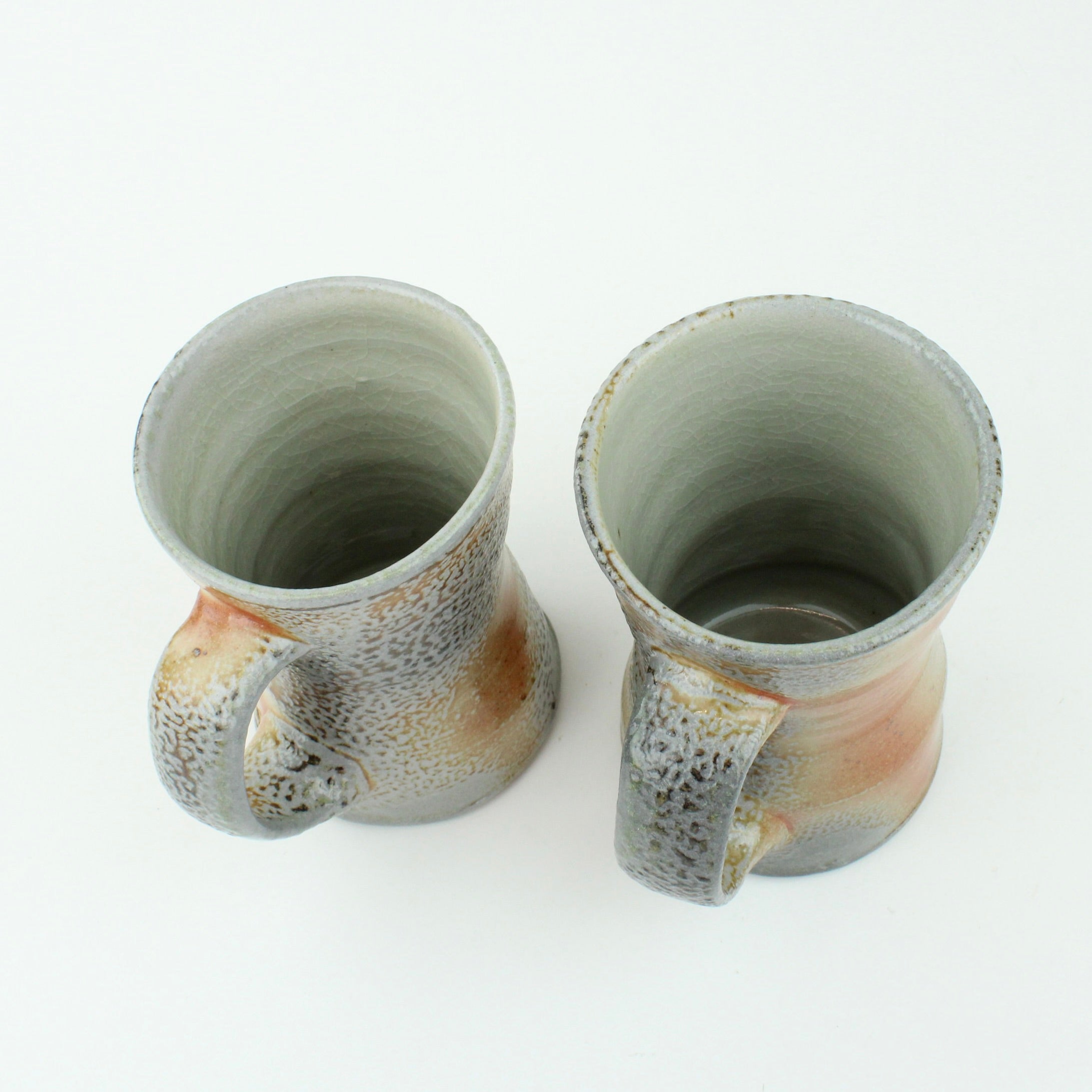 Duncan Shearer throws his pots on a slow-moving treadle wheel, responding intuitively to the differing characteristics of clay. Most of his work begins on the wheel before being added to and subtracted from, altering the initial round forms in search of a liveliness and freshness that carries through the entire making process. His firing method, using a wood kiln and spraying a small quantity of soda ash solution at high temperatures, introduces an inherent unpredictability, creating variegated flashings and speckled glaze patterns that make each piece unique.