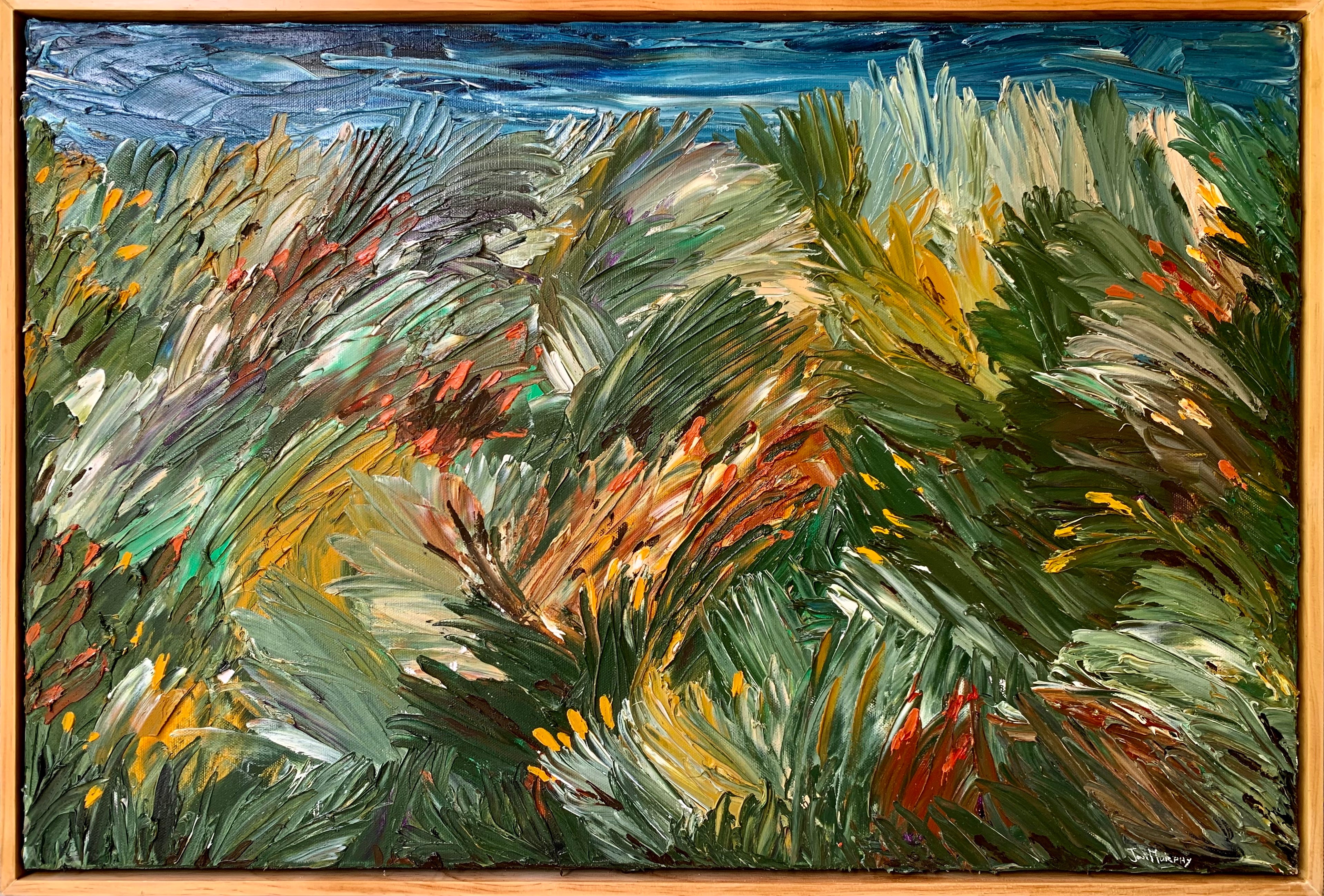 'It is the textures, colours and movement of beach flora which has captivated my imagination. We are so very lucky in Taranaki to have rich coastlines blooming with a multitude of grasses, flowers, flaxes and shrubs, wild and wonderful colours and shapes. Contrasted against dramatic seas and skies, it is a symphony for the eyes.' -Joni Murphy