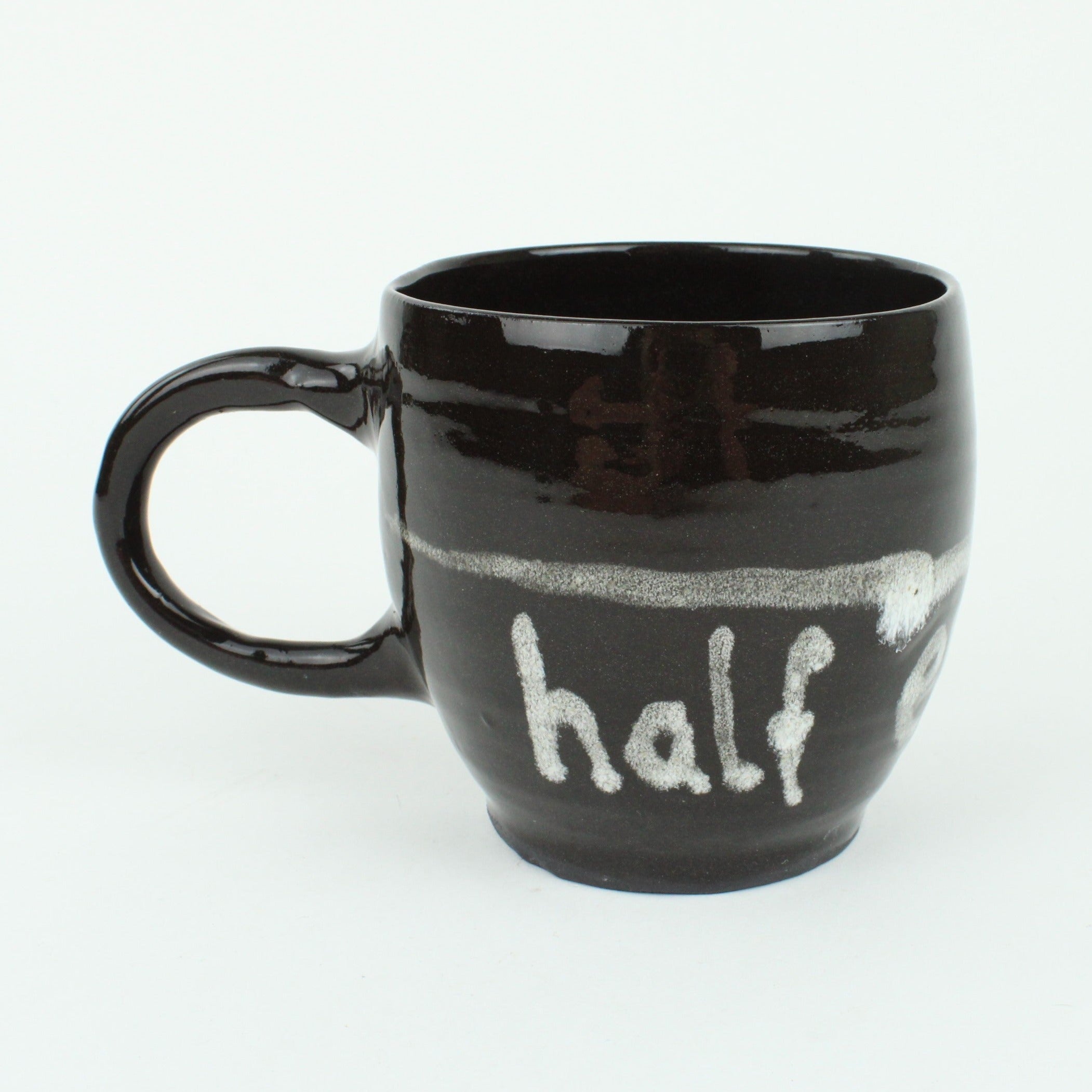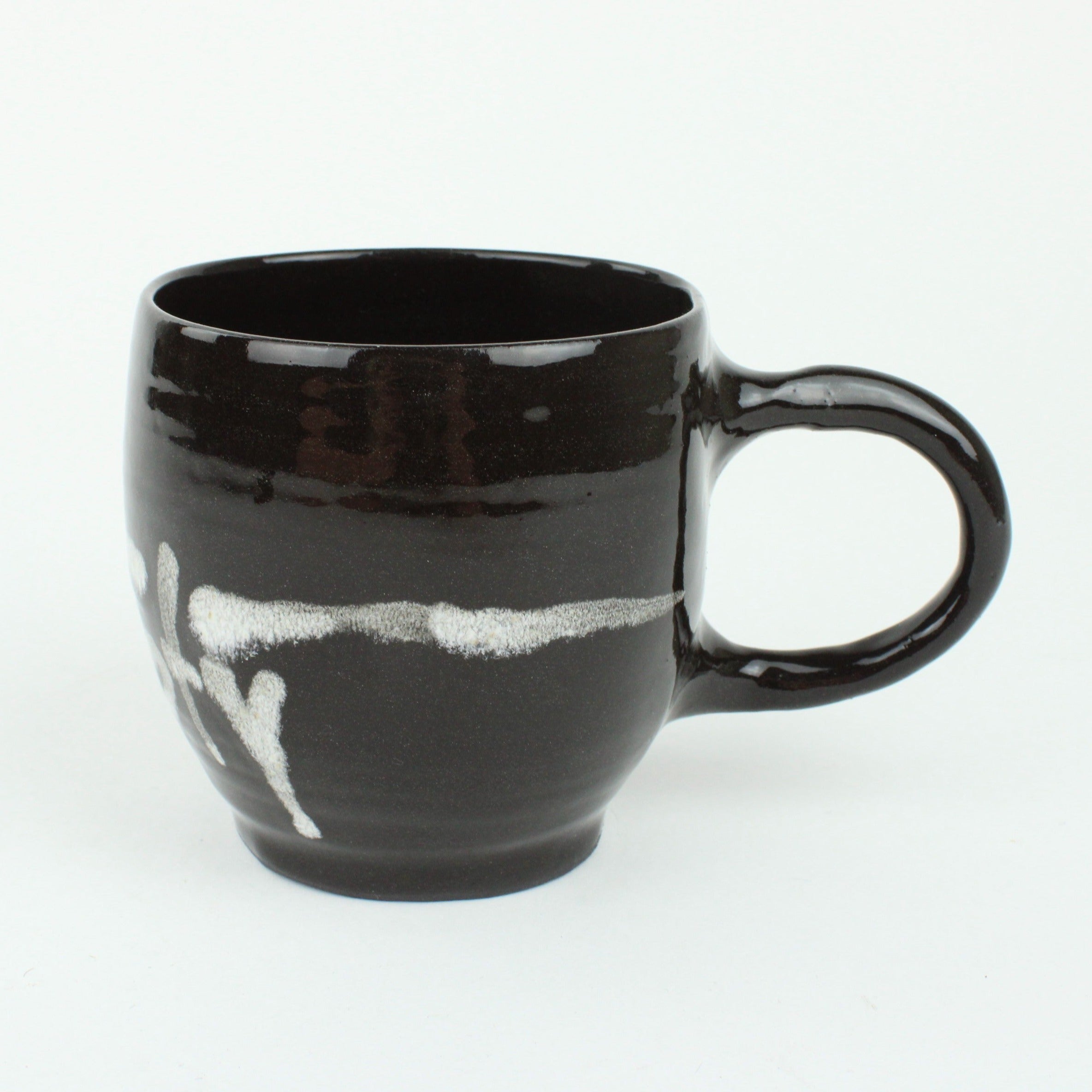 Recently she had an order for cups which were meant to be “crazy, splashy, dotty, and colourful" with stripy handles. After making them, Marion realised she liked the drawing she did with coloured pencils much better. So she made herself something vaguely resembling ceramic pencils and toned down the colours and made them less busy. Marion used dark stoneware clay dipped in white slip to achieve a crackle, and some are very fine porcelain.