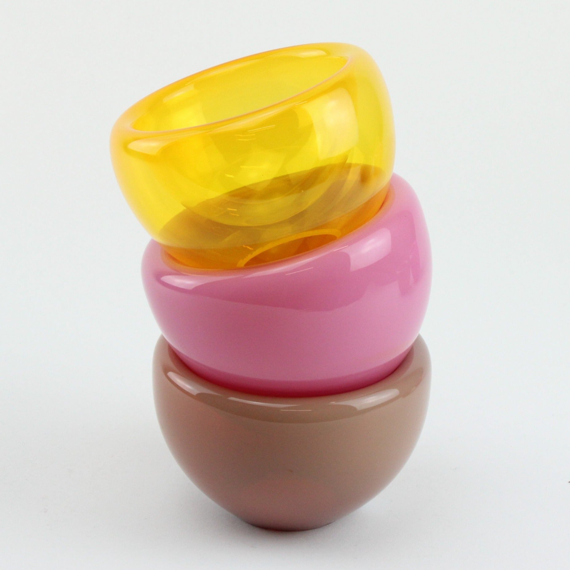 Matthew Hall is passionate about making minimal, utilitarian and technically focused glass art inspired by mid-century design. He explores and plays with glass density, optic effects and colour creating fluid pieces of sculpture and serve-ware.