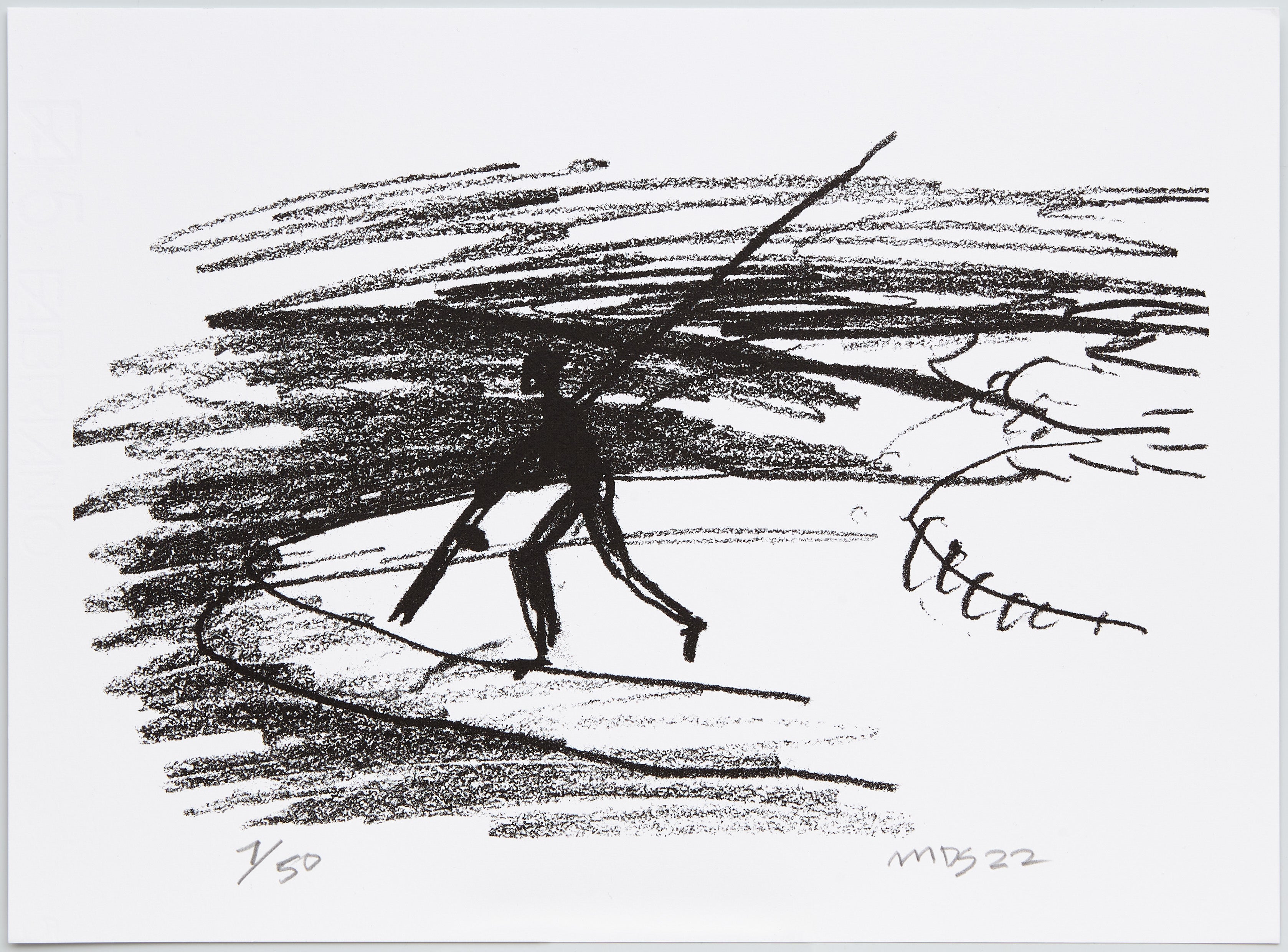 'The drawing expresses beautifully the rhythm between the fisherman and the waves, the body, rod, arms, head. This drawing was on my studio wall for four or five years, and I suddenly thought this should be a print.' - Michael Smither