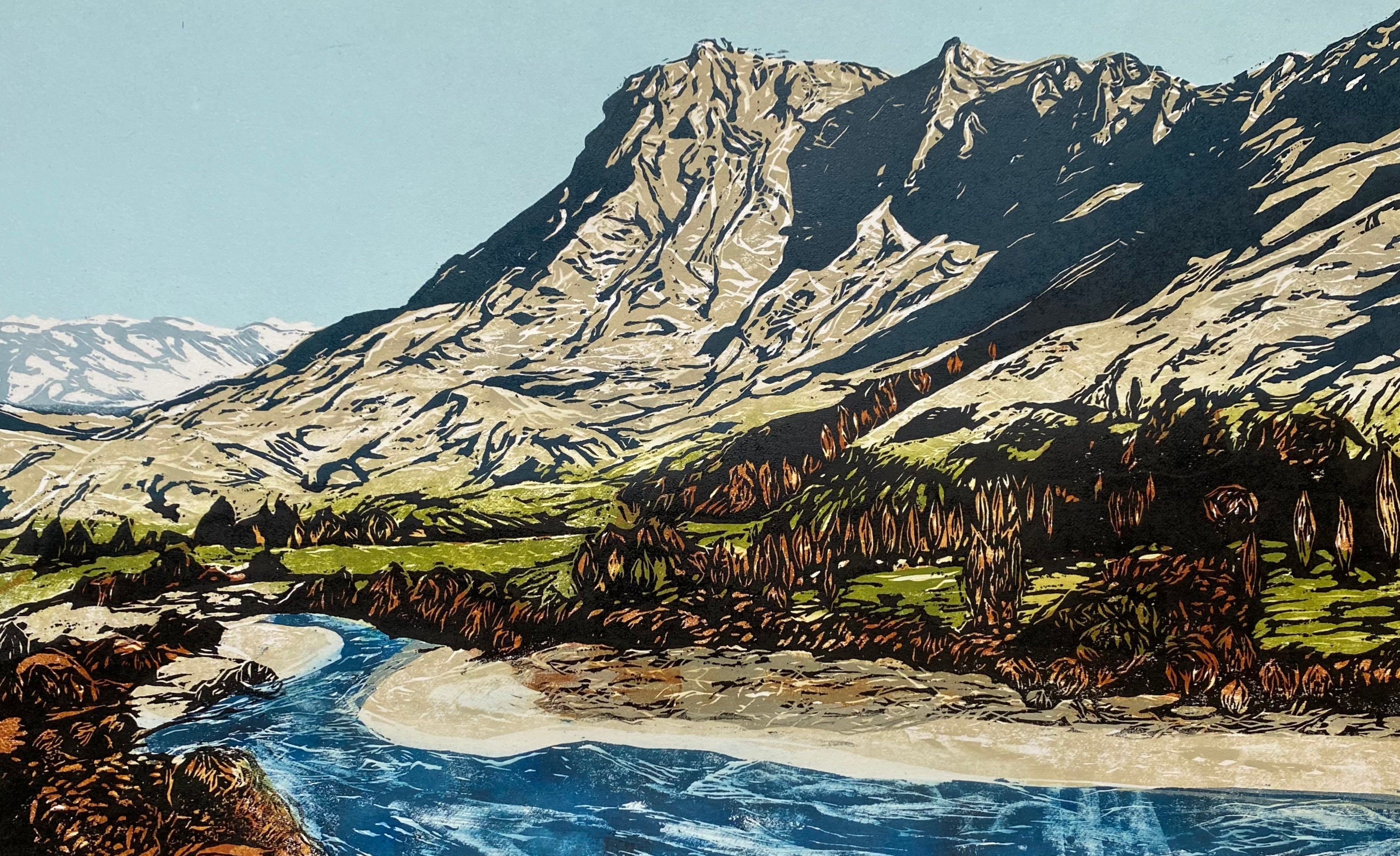 From Ngai Tahu and Ngati Kahungunu descent, Nic understands the importance of land and its connection to the people which continues to inspire her woodcut prints.
