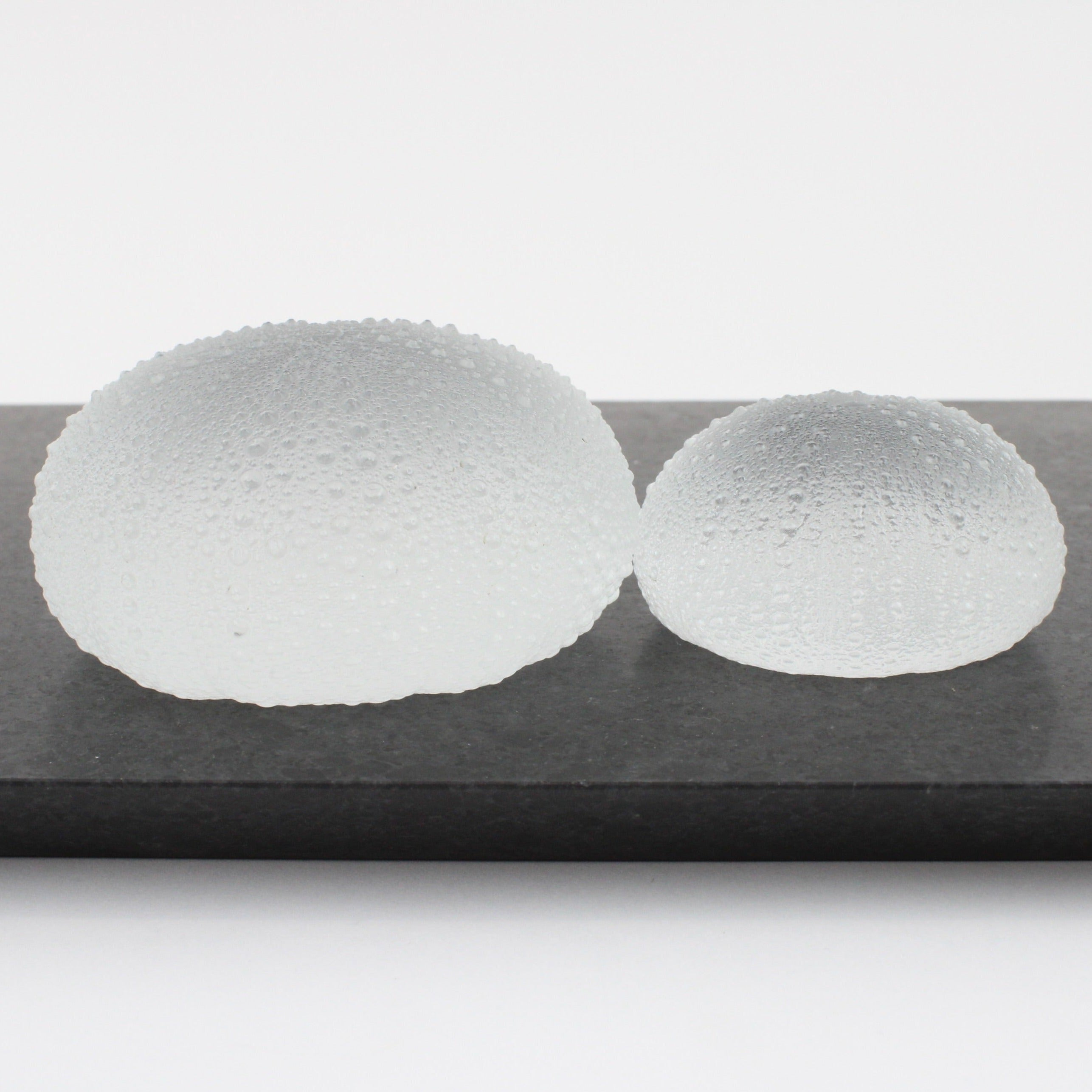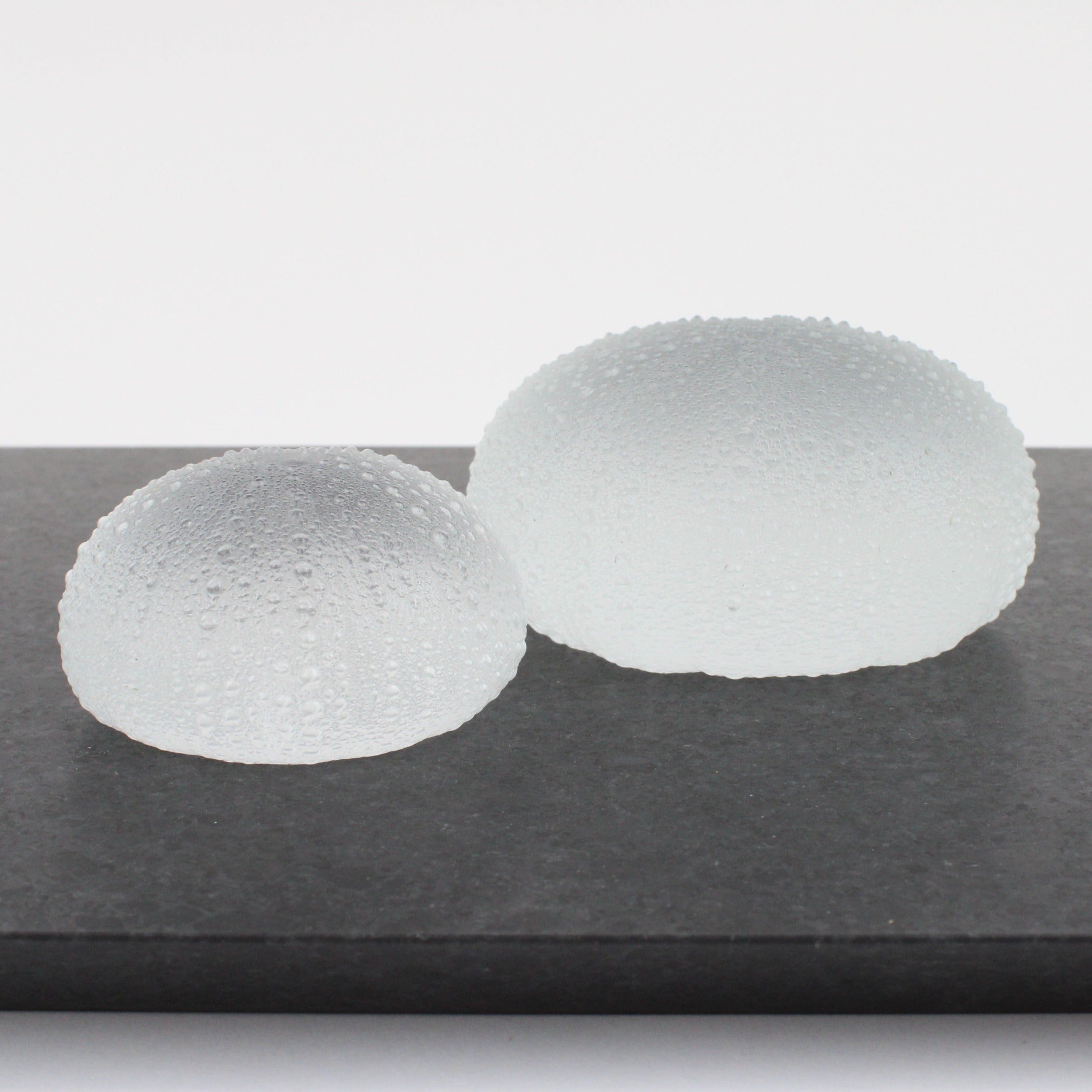 Rebecca’s eye for colour is used to great effect in these pieces, the results are both playful and formally striking. Cast in Reichenbach glass from genuine sea urchin shells collected on the beaches of Northland these large urchins make quite a statement.