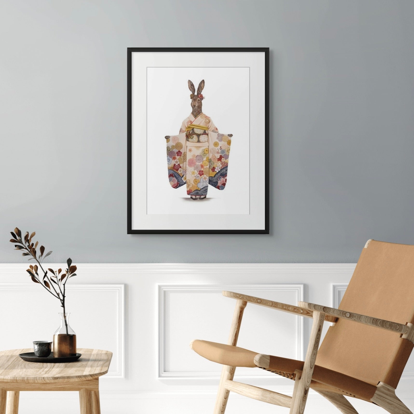 Watercolour and ink in black frame