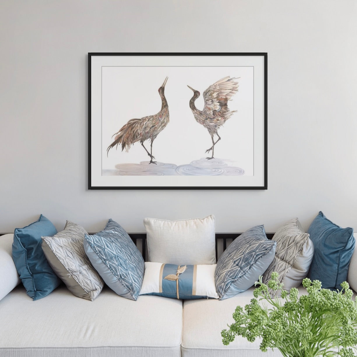 Watercolour and ink in black frame