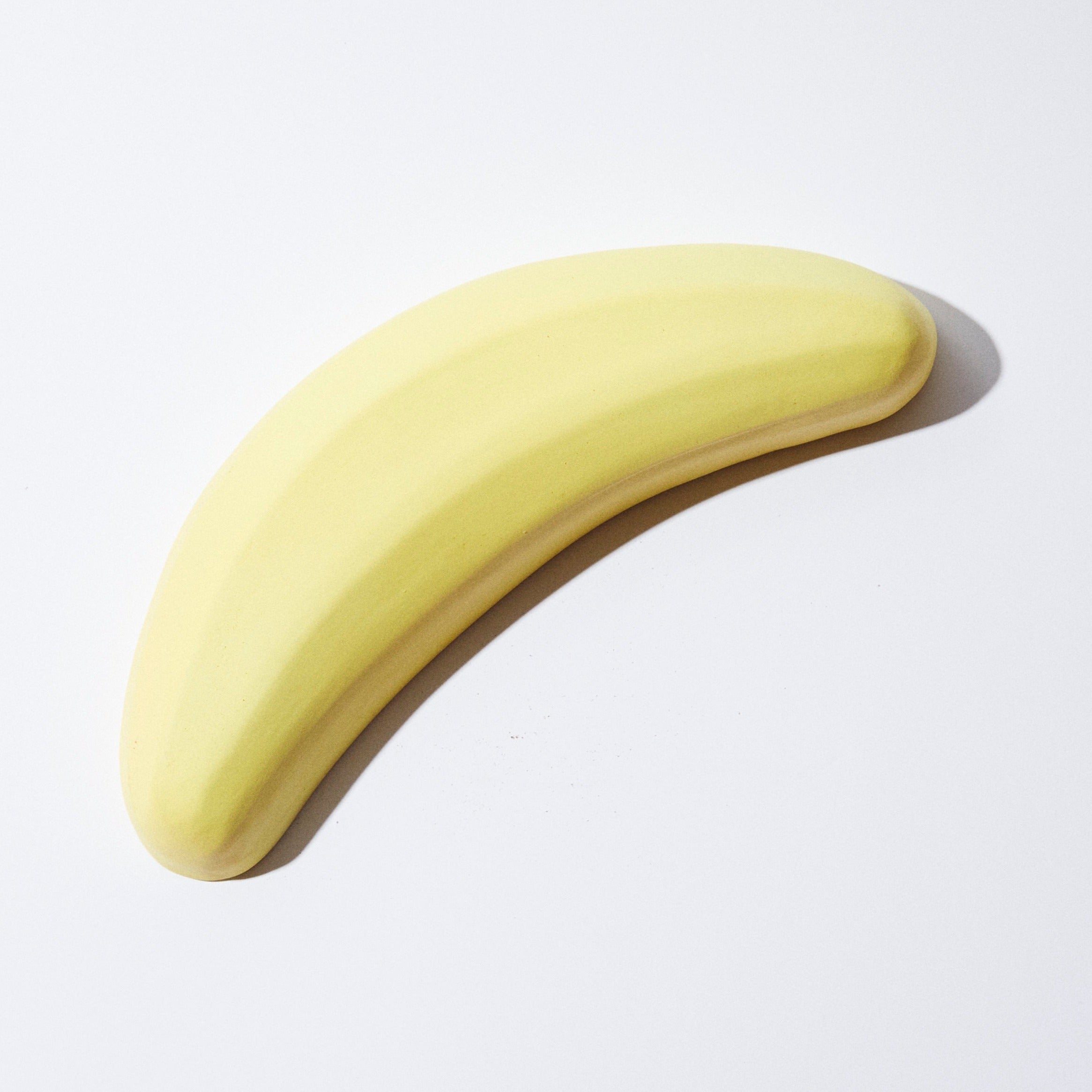 Large porcelain replica of the New Zealand iconic banana lolly. Has a hole in the back to hang flush against the wall.