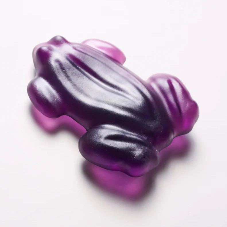 Bold, bright, and up to no good. This glass crystal frog is a glossy tribute to the ultimate chewy treat—scaled up and sculpted to last a lifetime.