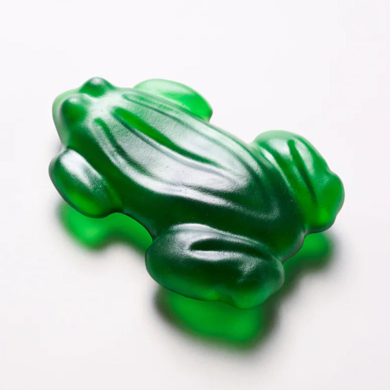 Bold, bright, and up to no good. This glass crystal frog is a glossy tribute to the ultimate chewy treat—scaled up and sculpted to last a lifetime.