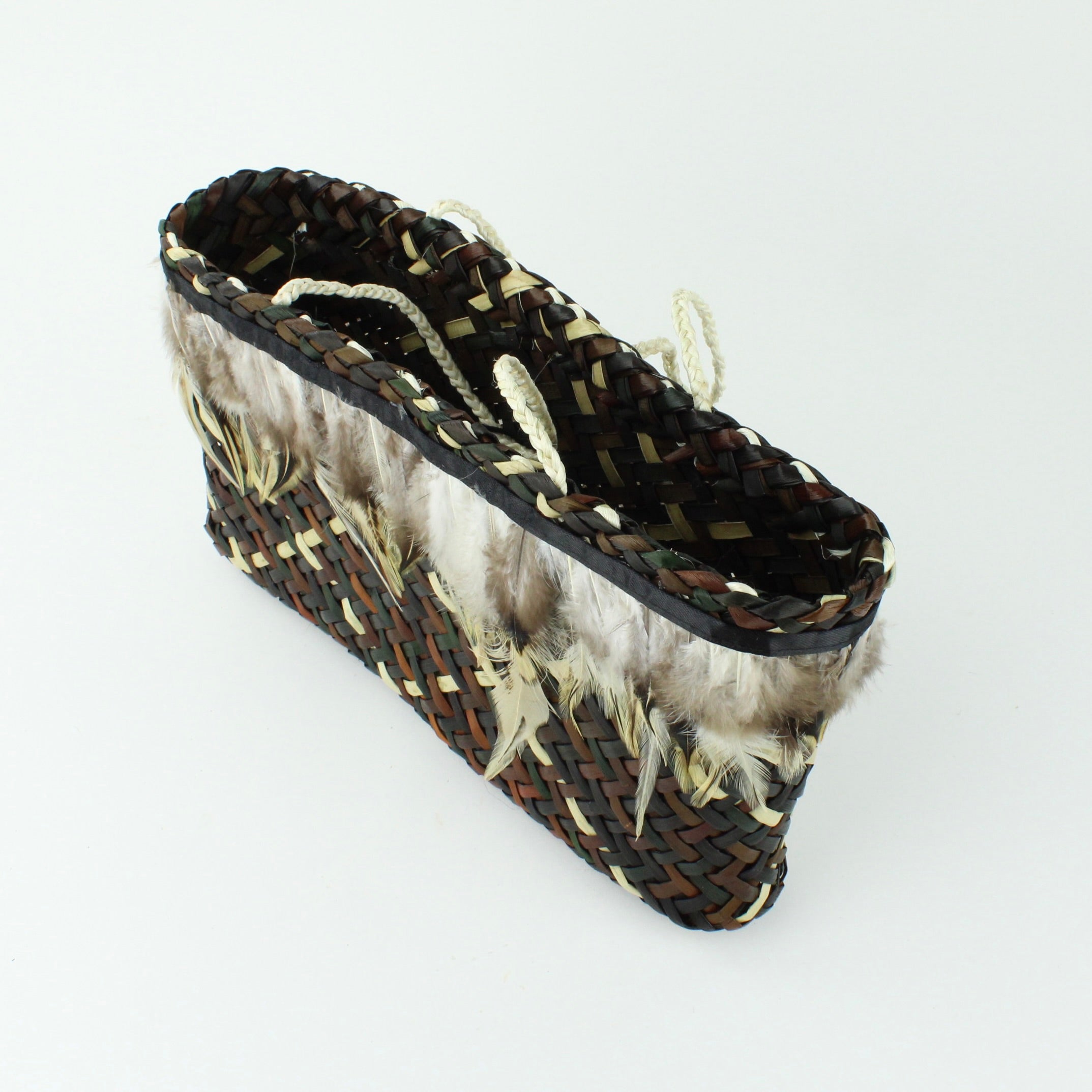 Growing up on the farm instilled in Bernadette Ross a profound respect for the land, the bush, rivers, and the sea. She enrolled at Te Wananga o Aotearoa in Tauranga Moana. What ensued was a transformative four-year journey delving into the Art of Raranga (Flax Weaving). The influence of Tutor Whaea Bibbins Tangitu on her work is unmistakable. Bibbins, a master of Porohita and Kete, played a pivotal role in shaping her skills. Pursuing her Maunga Kura Toi -Bachelor of Māori Art, she found guidance from another adept weaver, Rawhinnia Gray, who resides in Tauranga.